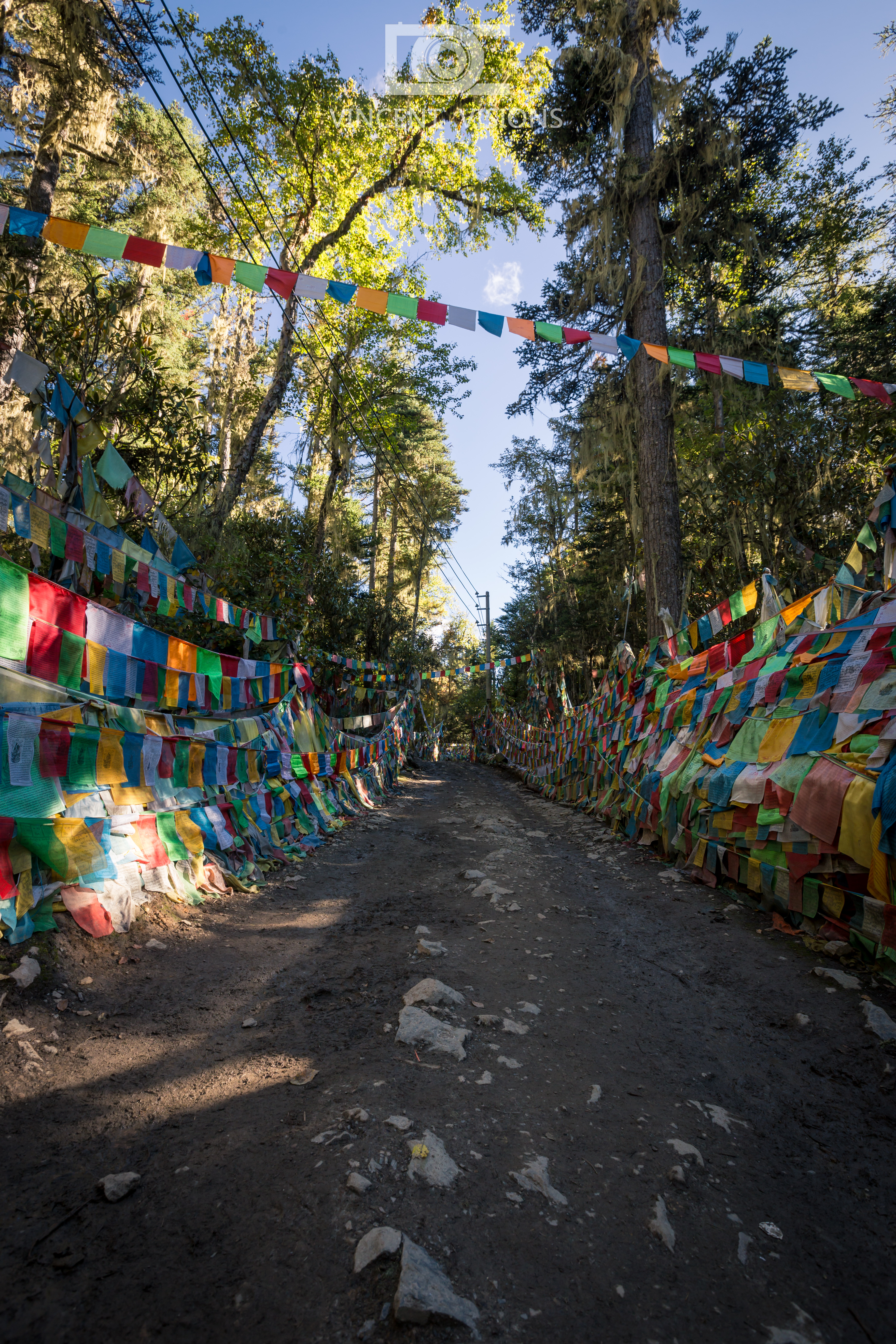 继续走继续走,当你看到经幡铺满路面的时候,恭喜你,你已经到达今日最高点——南争垭口了。过了这里,基本都是下坡的路了,基本没有泥泞路段,但沙石路段增多。相信你经历了这一路的酸爽,宁愿泥泞多一些也不想爬坡了