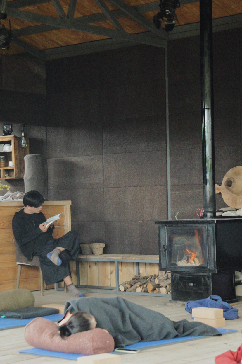 当我和Eddie老师走进诺尔丹“在别处”的空间,都不约而同地感受到了这里的“气场”,这是其他地方没有的。我们在这个空间静坐、感受,然后做了布局的微调。这是在我们看来,作为课前准备很重要的一部分。瑜伽练的不仅仅是同学们的身体,更是感知力,这份感知力,帮助大家建立和环境的连接。