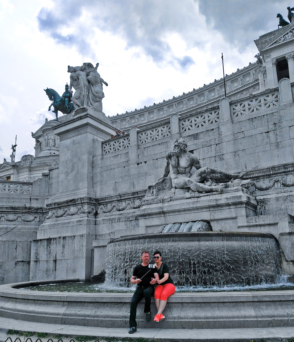 纪念堂前面闯入我画面的是一位身着古 罗马 武士盔甲的 意大利 小伙子,他还神气的给我摆pose,竖大拇指!