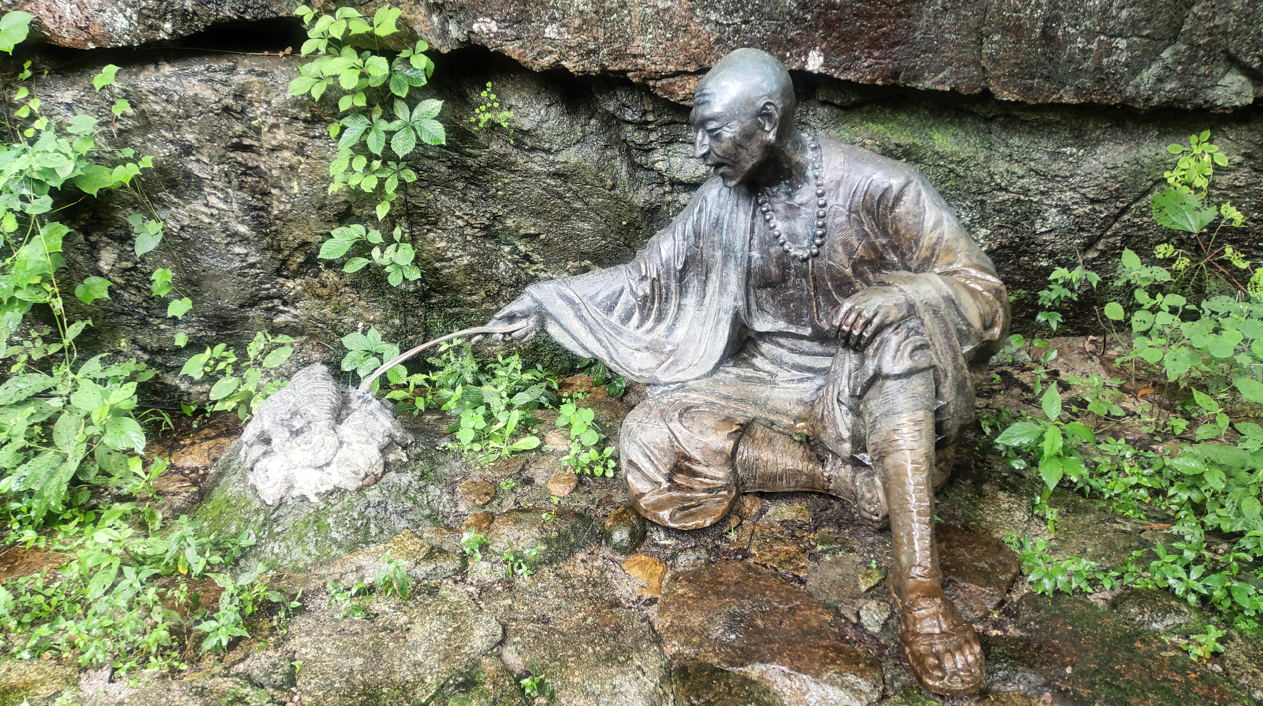 梵音古道开始不远处就有根据这个故事建的雕像,懒残和尚烤芋头。后面还有好多根据他们的故事建的小景点。