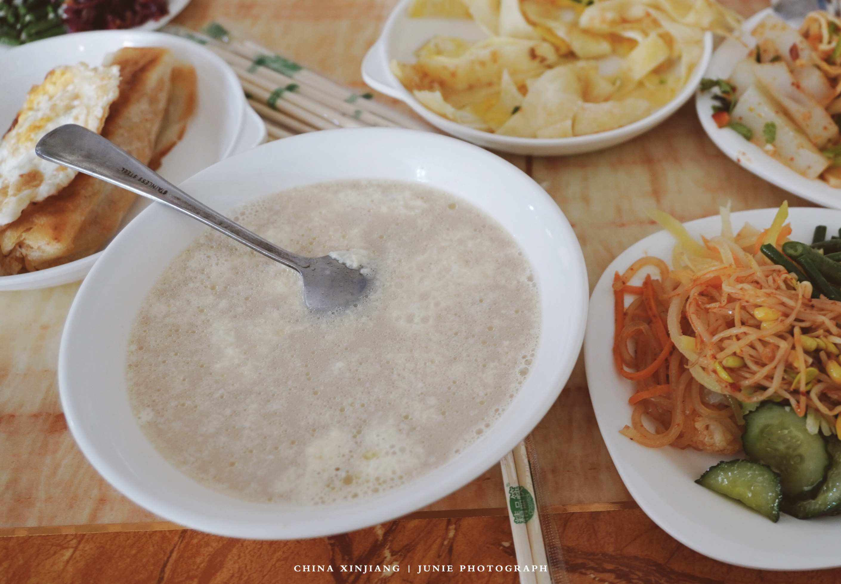 -喀什奶茶:用羊的奶皮子和砖茶熬制,咸的,是正宗的奶茶