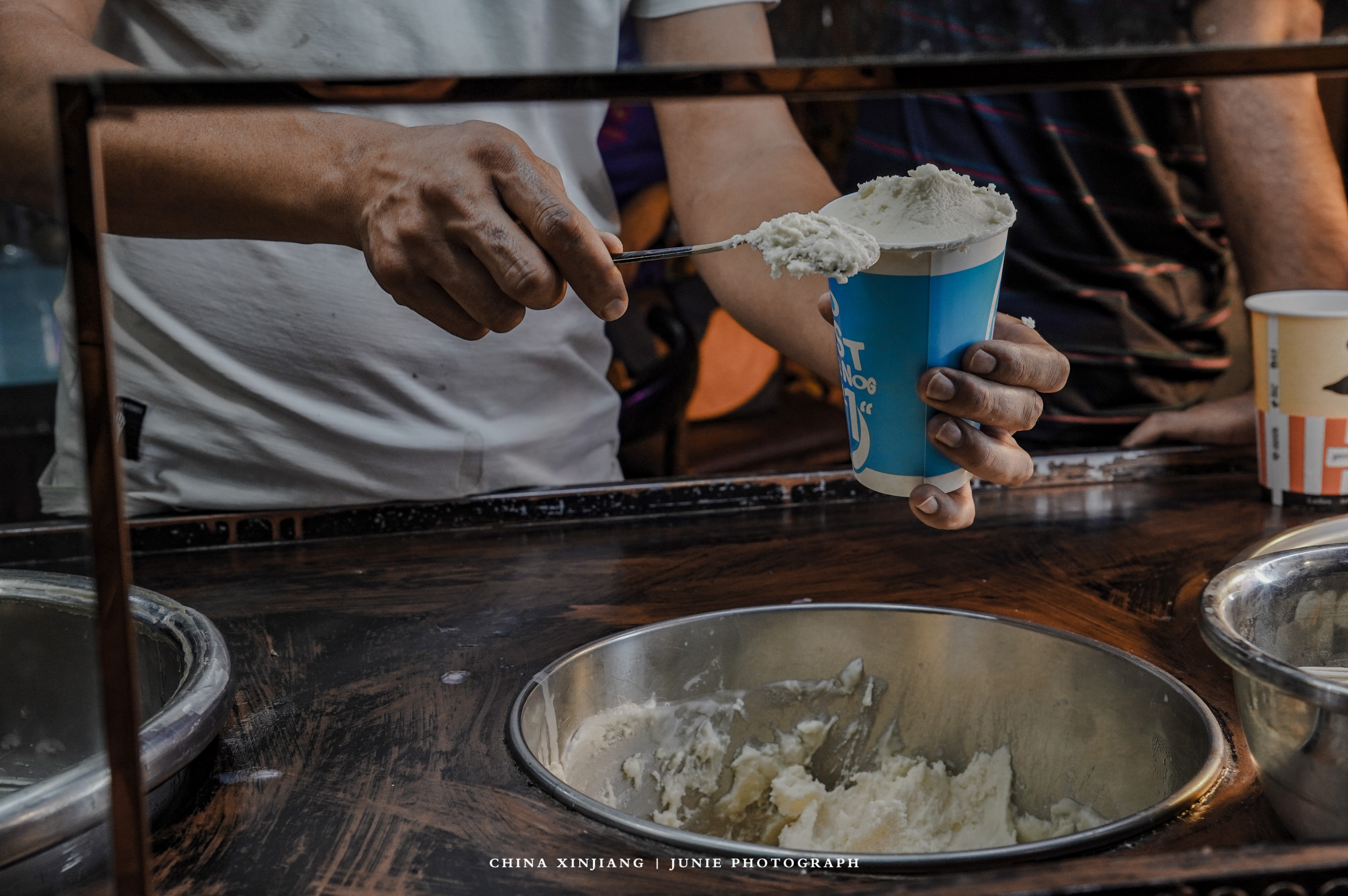 地道新疆美食的话很推荐:酸奶刨冰、羊肉串、烤包子、抓饭、凉皮、羊杂汤等