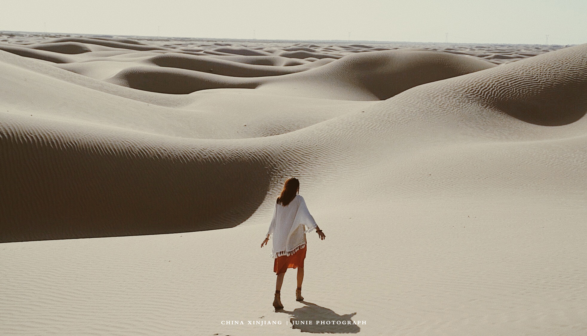 是达瓦昆沙漠的穿搭,沙漠标配是红裙子或橘红色系穿连衣裙,在一片土黄色之中就很显眼