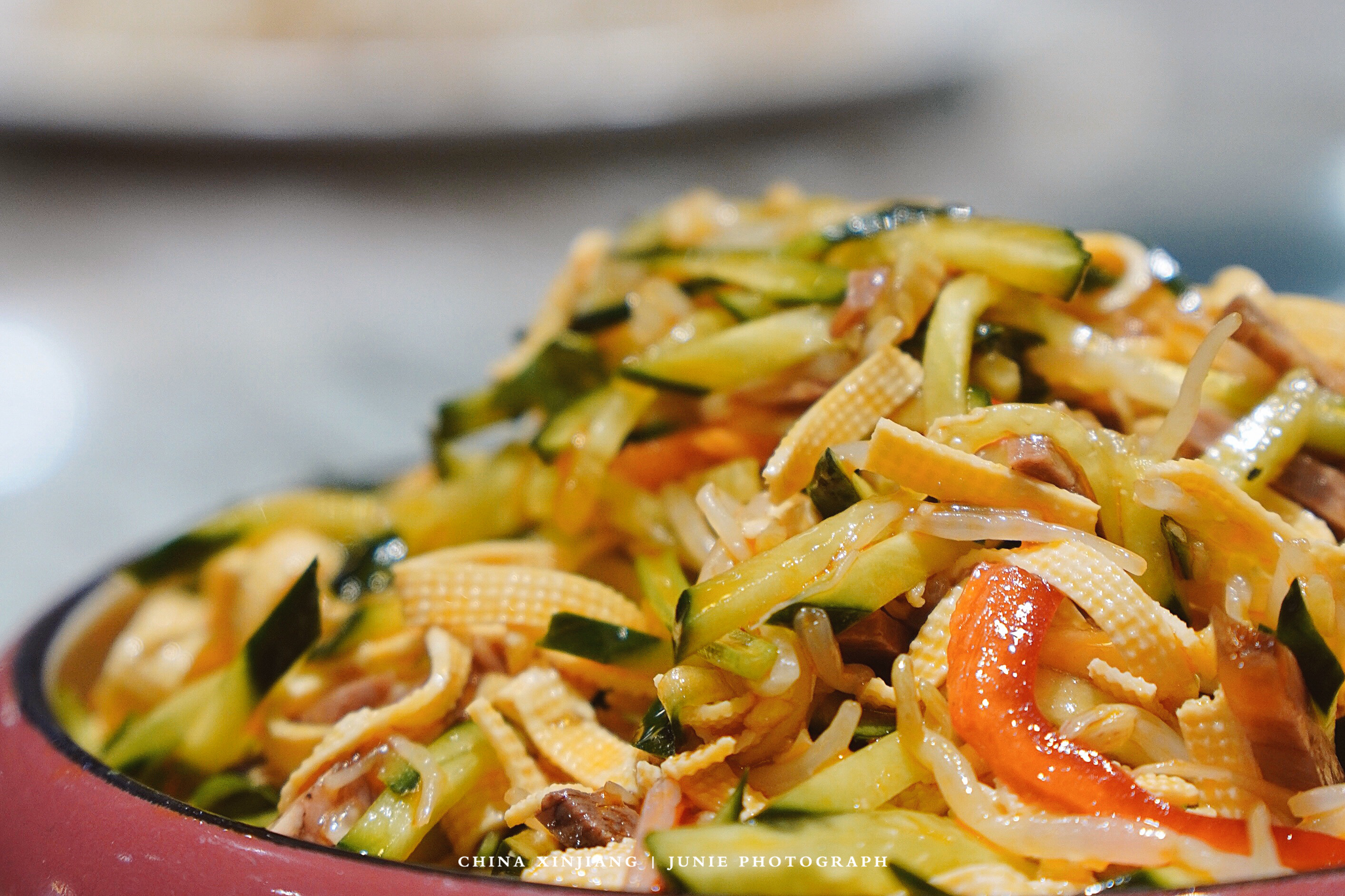 -胡拌菜/拌三鲜:凉菜的首选,胡萝卜丝、洋葱、豆皮和黄瓜丝等,配着烤肉吃很解腻