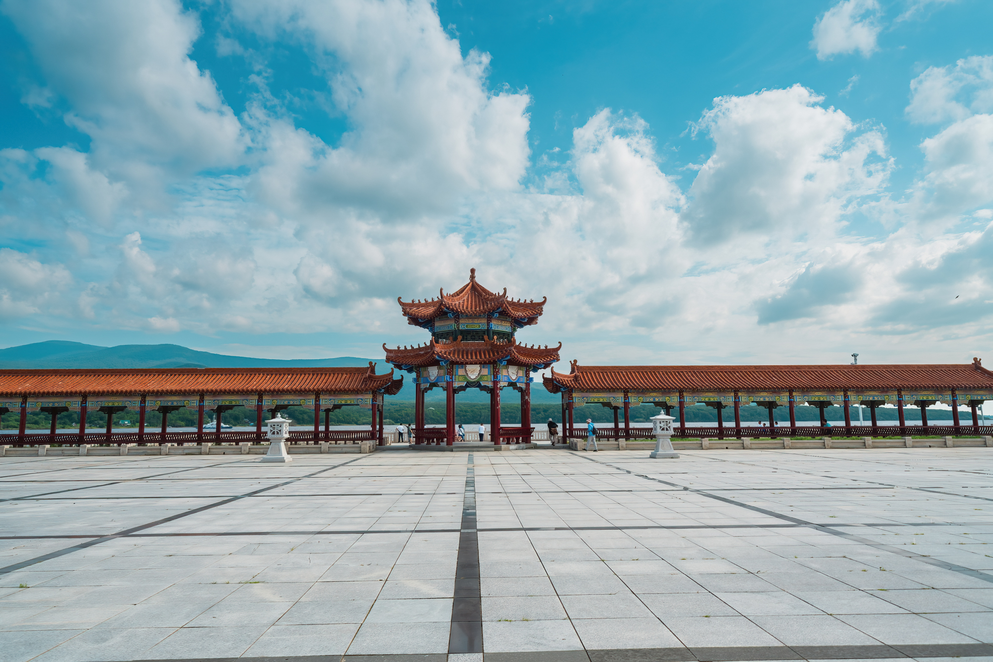 抚远县东极广场景区位于抚远水道与乌苏里江交汇处,是黑瞎子岛旅游名镇重点景区之一。景区占地3.6万平方米,包括河口广场、太阳亭、游廊、极标、华表、水榭、界碑、四极文化墙、中国地图、入口文化石、游船码头、汉白玉围栏等。