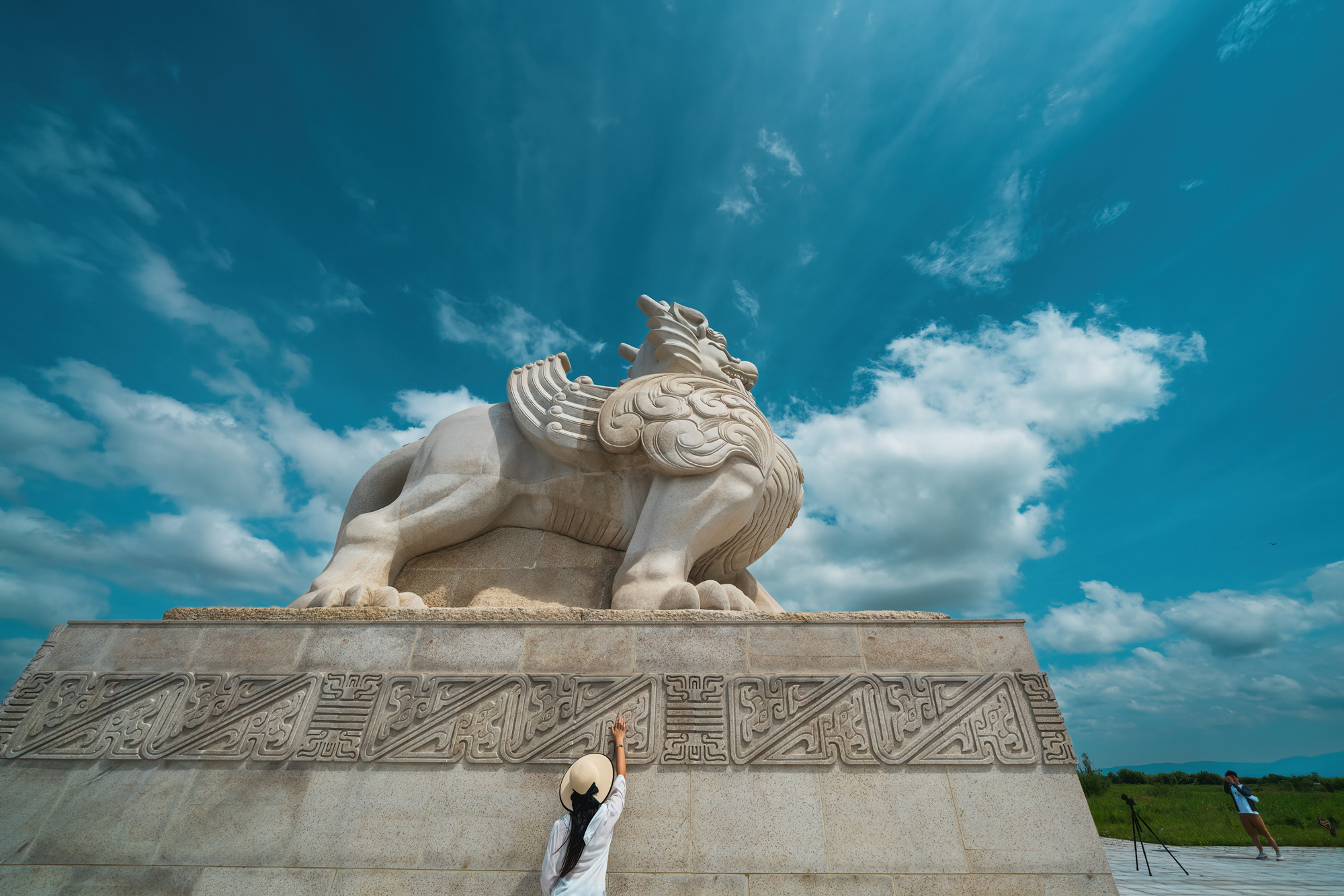 宝塔设太极图案圆形广场,广场直径171米,代表黑瞎子岛回归的171平方公里领土;广场两个极点分别布设龟和麒麟;广场布设60根青石盘龙浮雕柱,周边的56根代表中华56个民族。