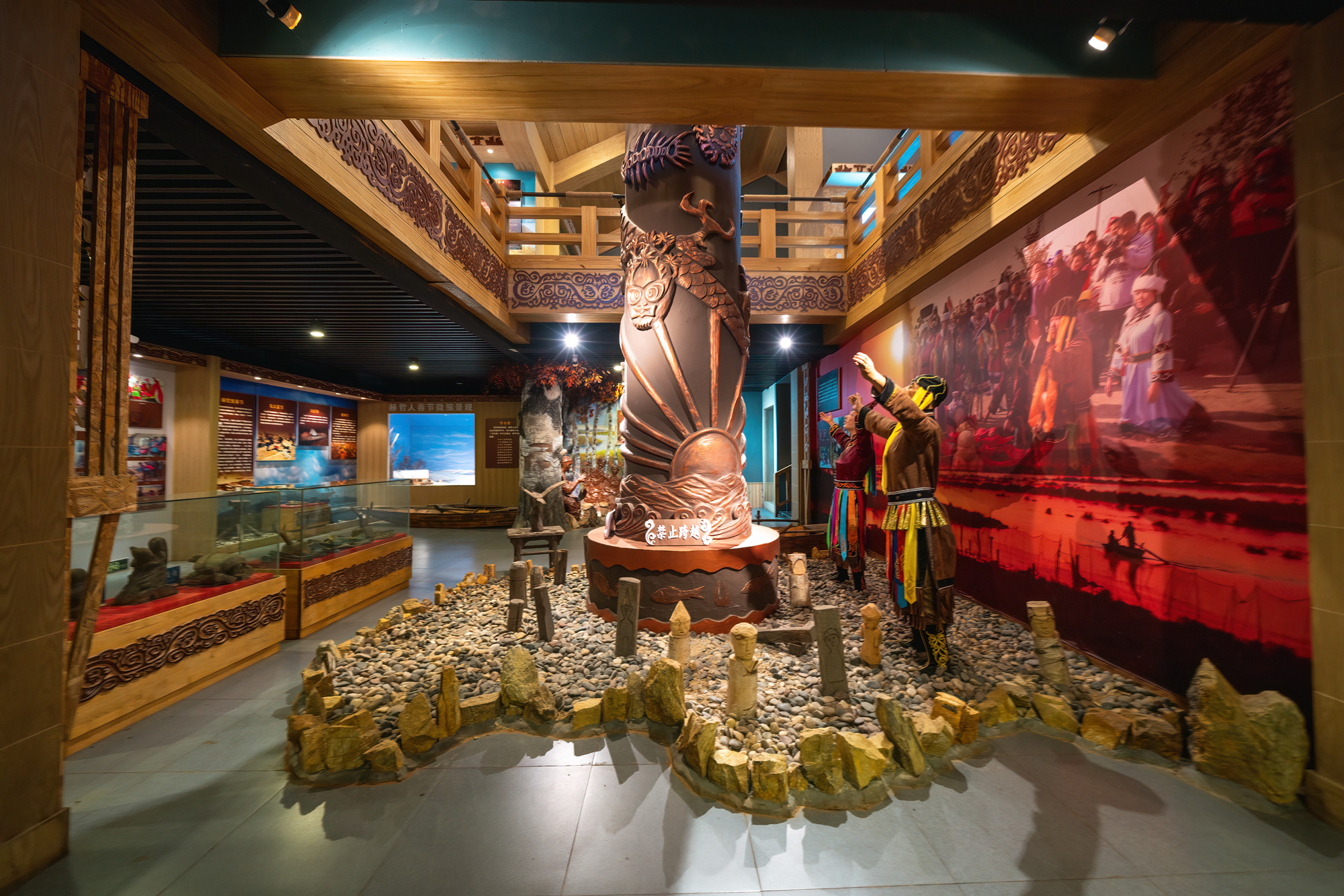 伴随着歌声,仿似穿越了时空,这里展示着关于赫哲族的过往,故事,一代又一代人的智慧呈现,以及对美好明天的追求和向往。展馆共两层,展示着赫哲族人生活习俗、习惯、以及劳动生活的场景,眼前这一幕幕还原着赫哲族人的故事与传说。