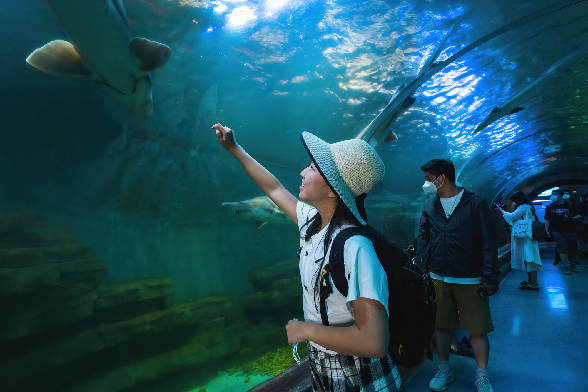 隧道观光区更让人如同深入海洋一样,看着鱼儿自由自在,漫步隧道中,聆听海洋的秘密。