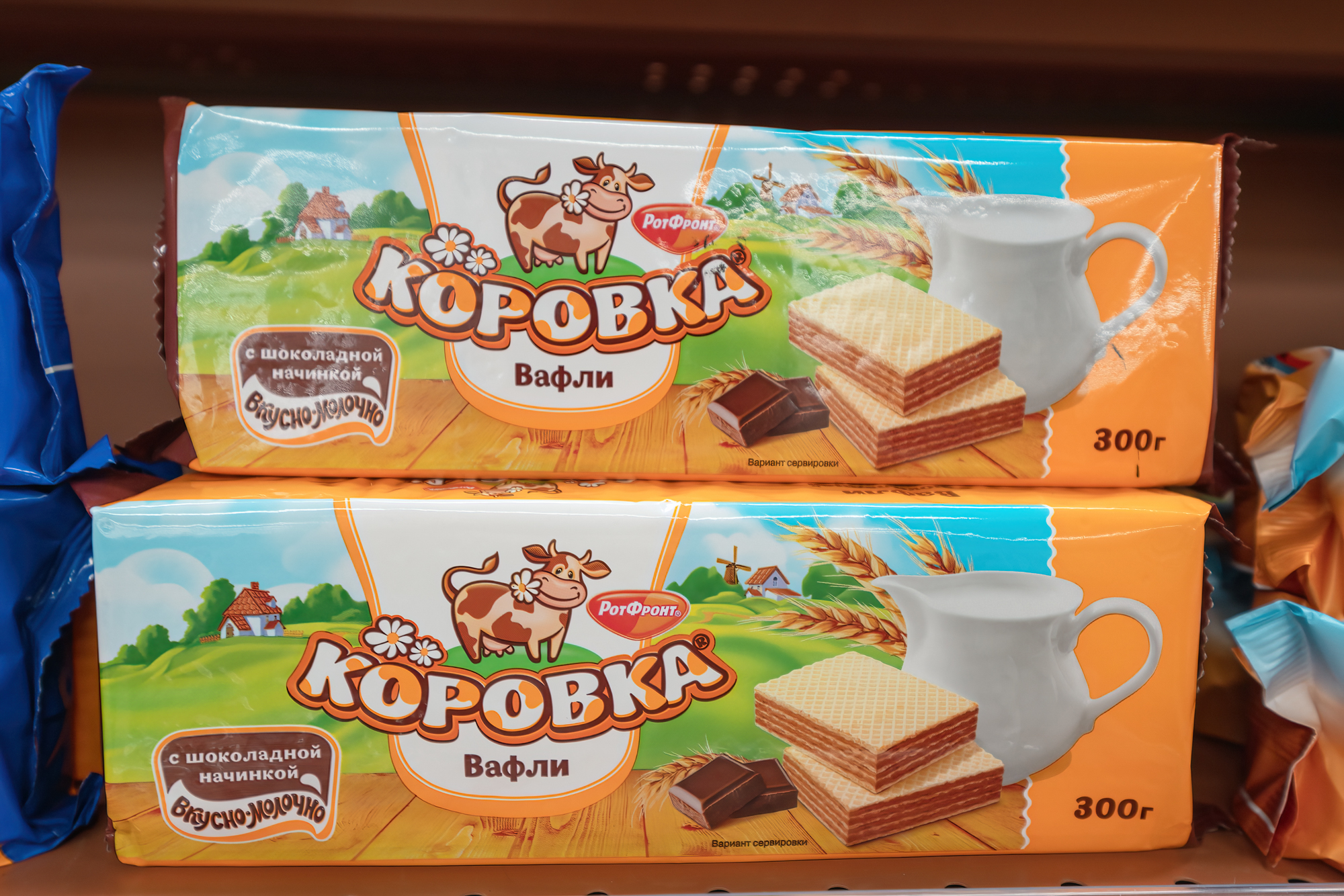商品琳琅满目,各种色泽鲜艳的巧克力,各种风味的饼干,各种花花绿绿的零食,以及各种日用品。