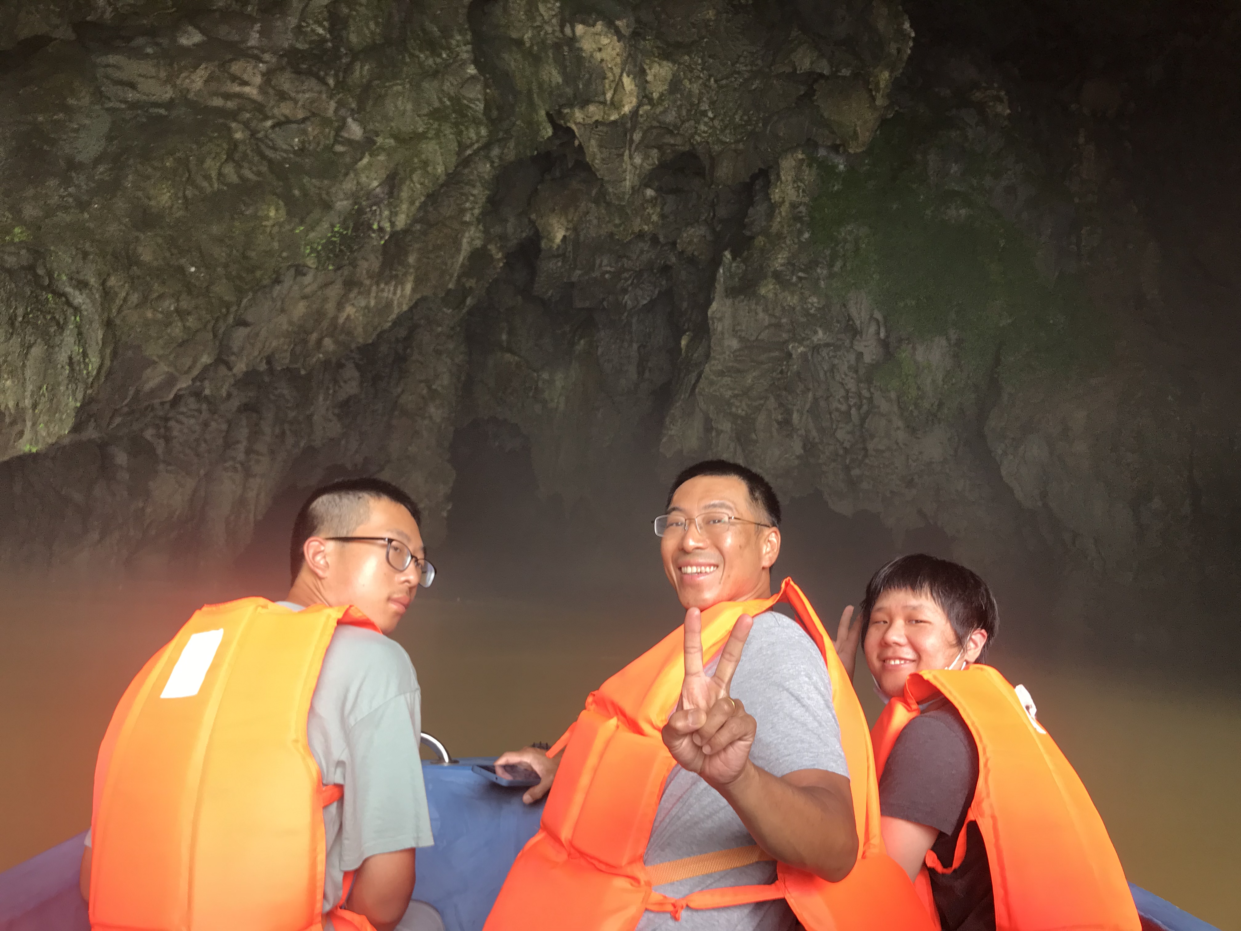 在巴马的盘阳河上来一张自拍吧,来,一起看镜头呀。