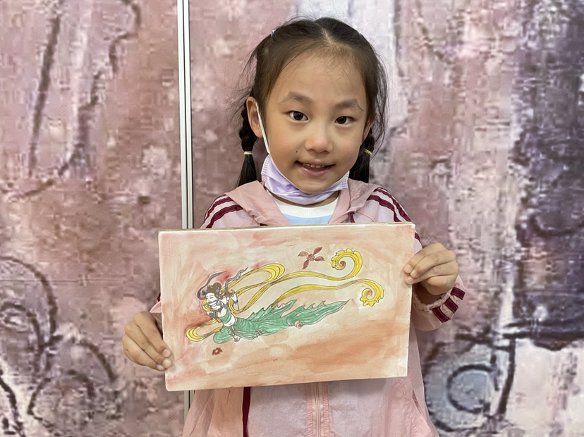 3、在泥板上临摹一幅敦煌壁画,在课程结束后,将会给孩子颁发由敦煌研究院认证的课程证书。
