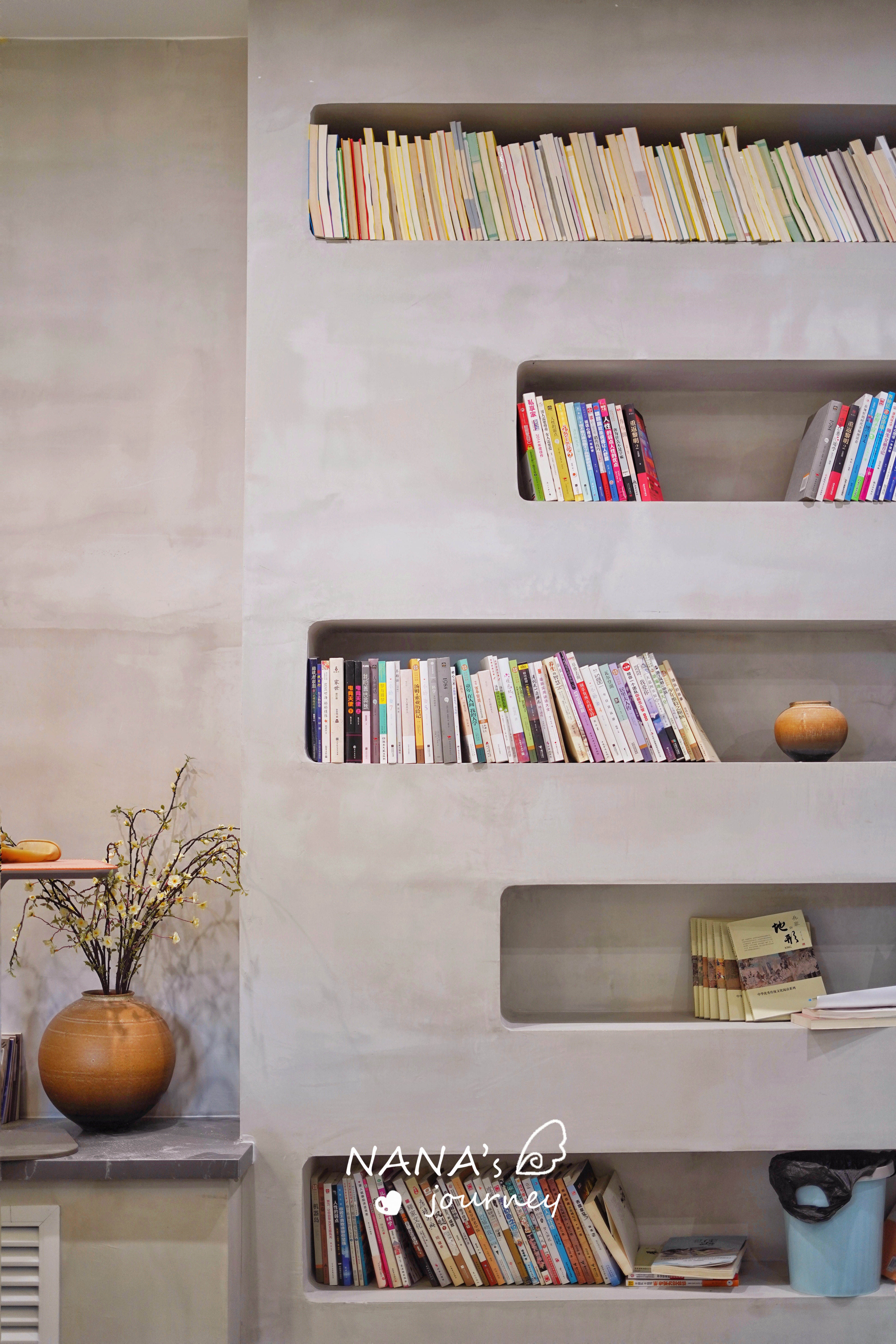 从没想过一个村子的厕所能如此文艺~看似普通的门,当进入的瞬间,看到的是满柜的书籍,满满的文艺气息,流线型的弧线设计,又让这个“图书馆”没有那么沉闷。等朋友上厕所的时间,倒也能翻本喜爱的书看看了呢!