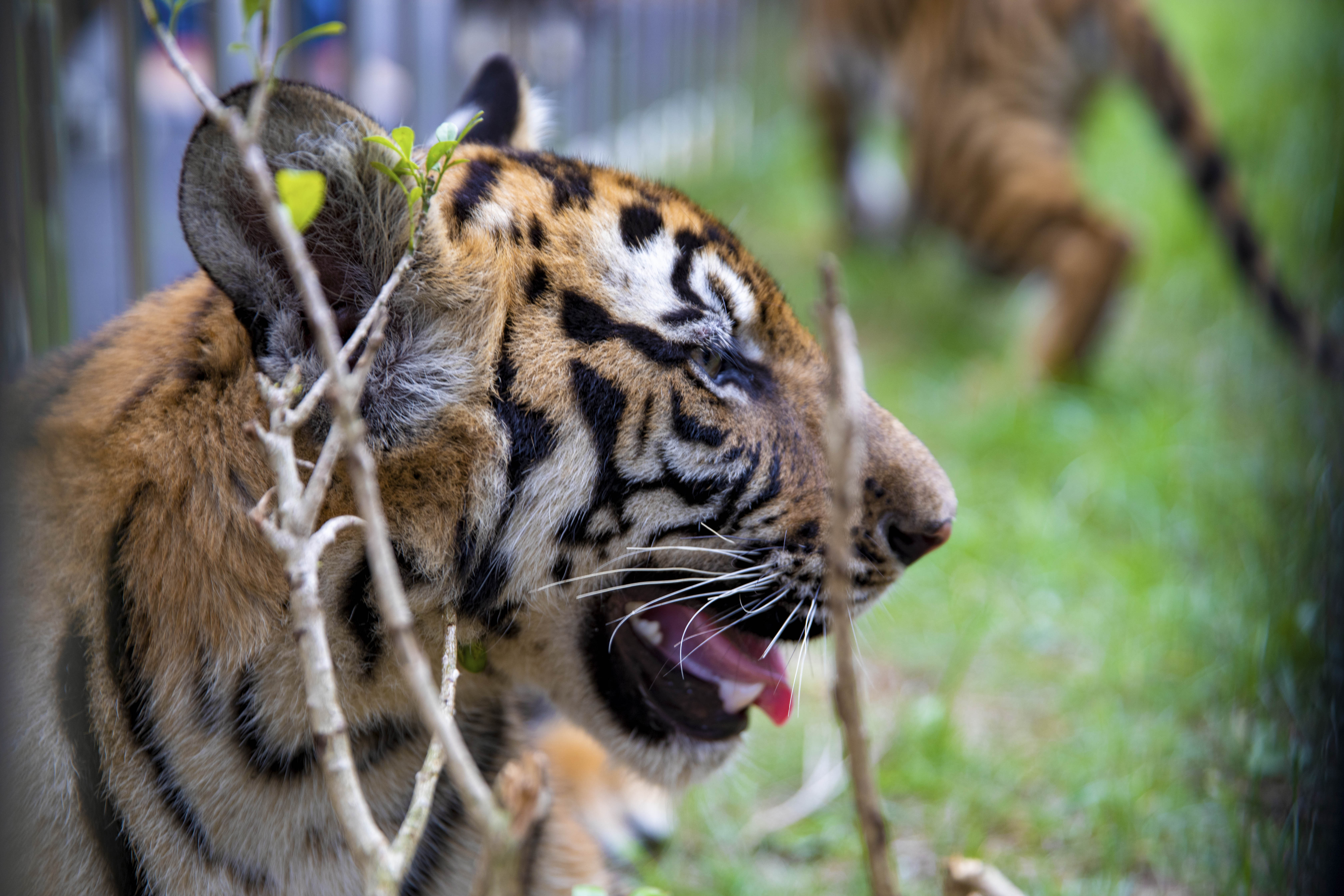 近距离一睹“大猫”的雄风。这是在一般的动物园里体会不到的,这些幼年时期的小老虎如今却优闲地在虎园里的草地上来回走动,呆头呆脑的虎宝宝显得十分可爱,这些萌态十足的小虎仔十分调皮。