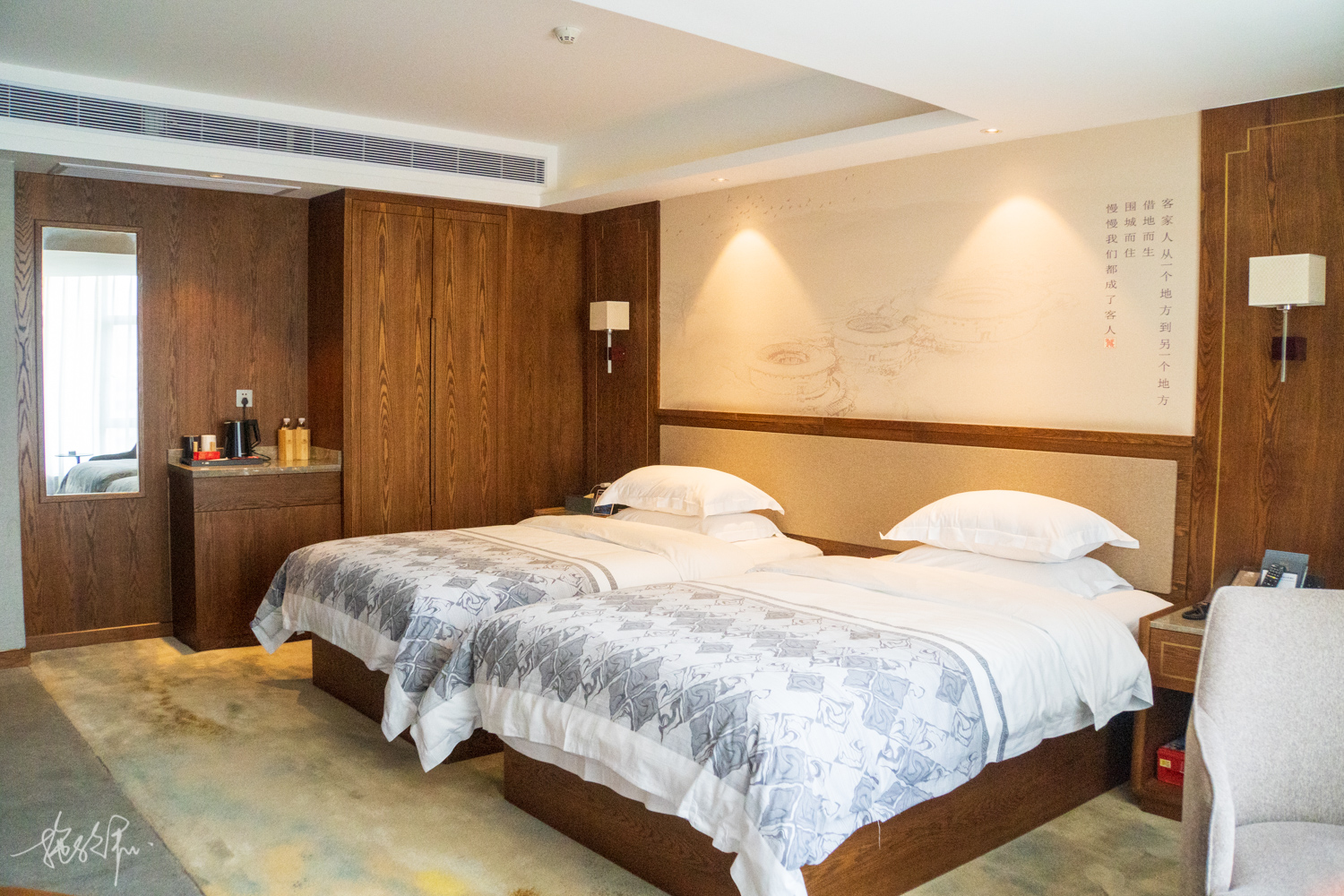在网上看了很久,最后还是选择了恒胜客家文化酒店,在韶关东站对面,酒店就在江边,沿着江步行到百年东街也就十来分钟。