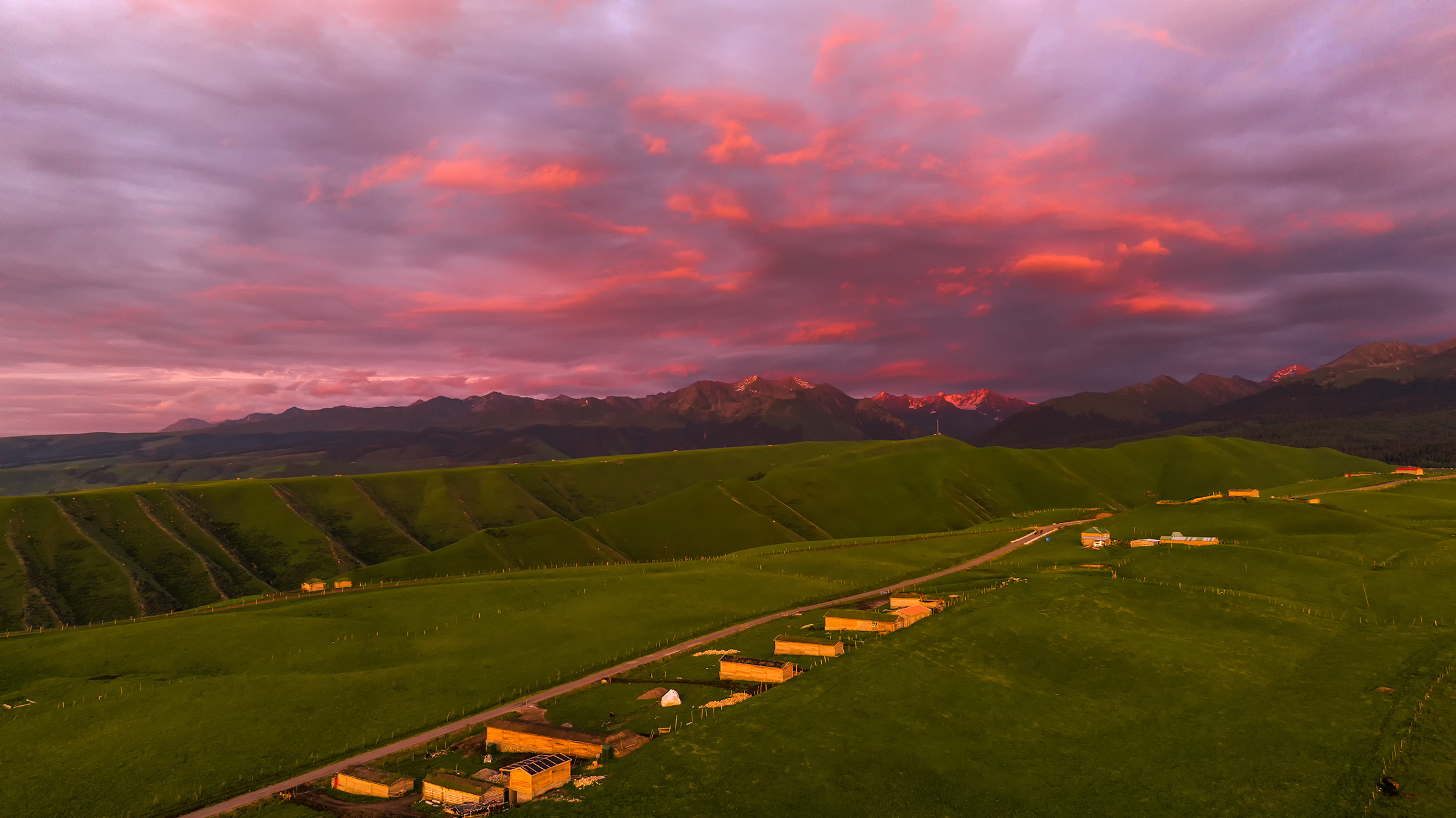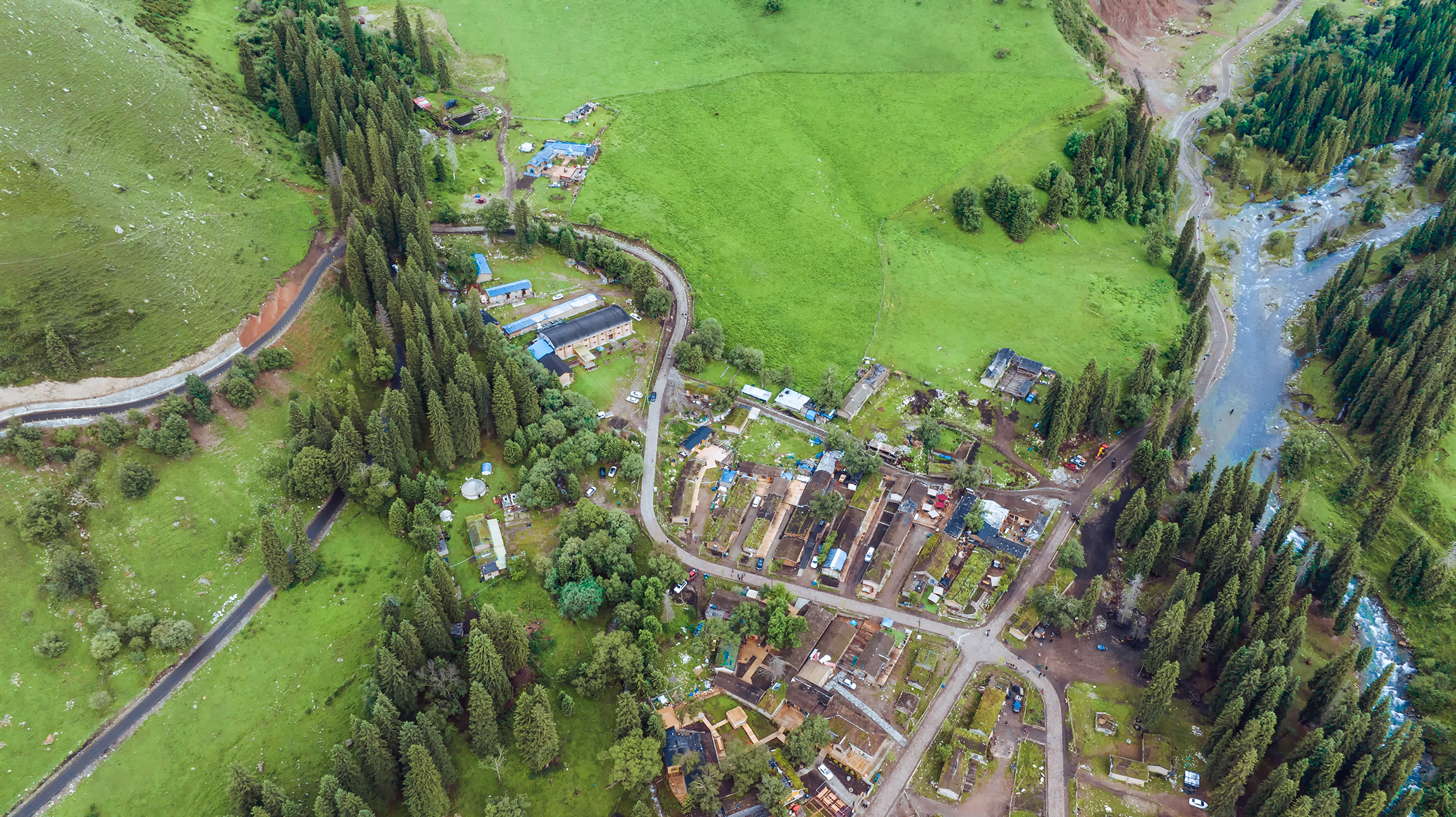 天山脚下的一处小山坡,有一座哈萨克族牧民的小村庄——琼库什台,它位于乌孙古道的北入口,藏于草原深处,四面环山,依水而建,堪称世外桃源。