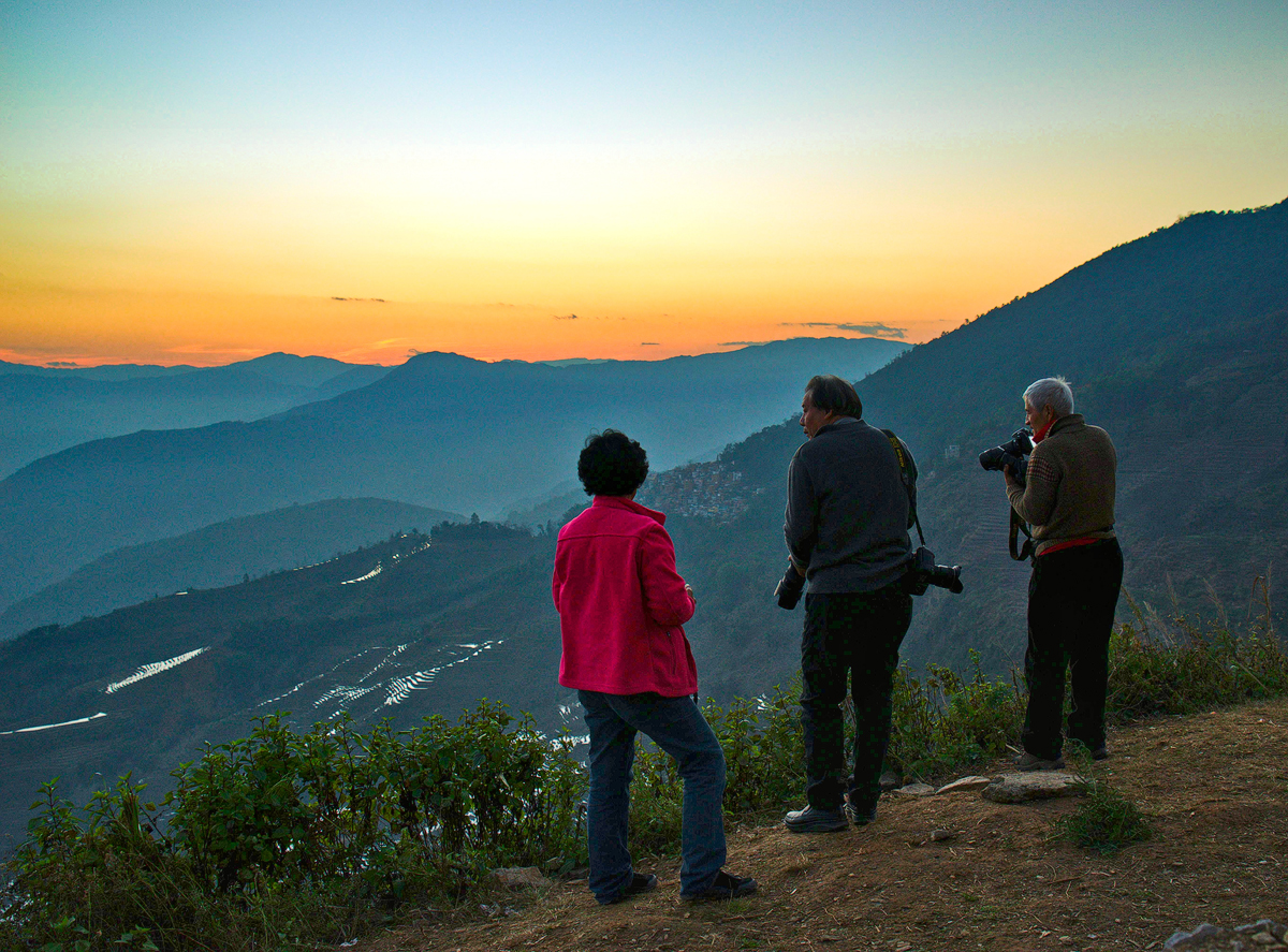 观景台上拿着长枪短炮在梯田旁边守候人们,谁不希望记录下属于自己的美景……