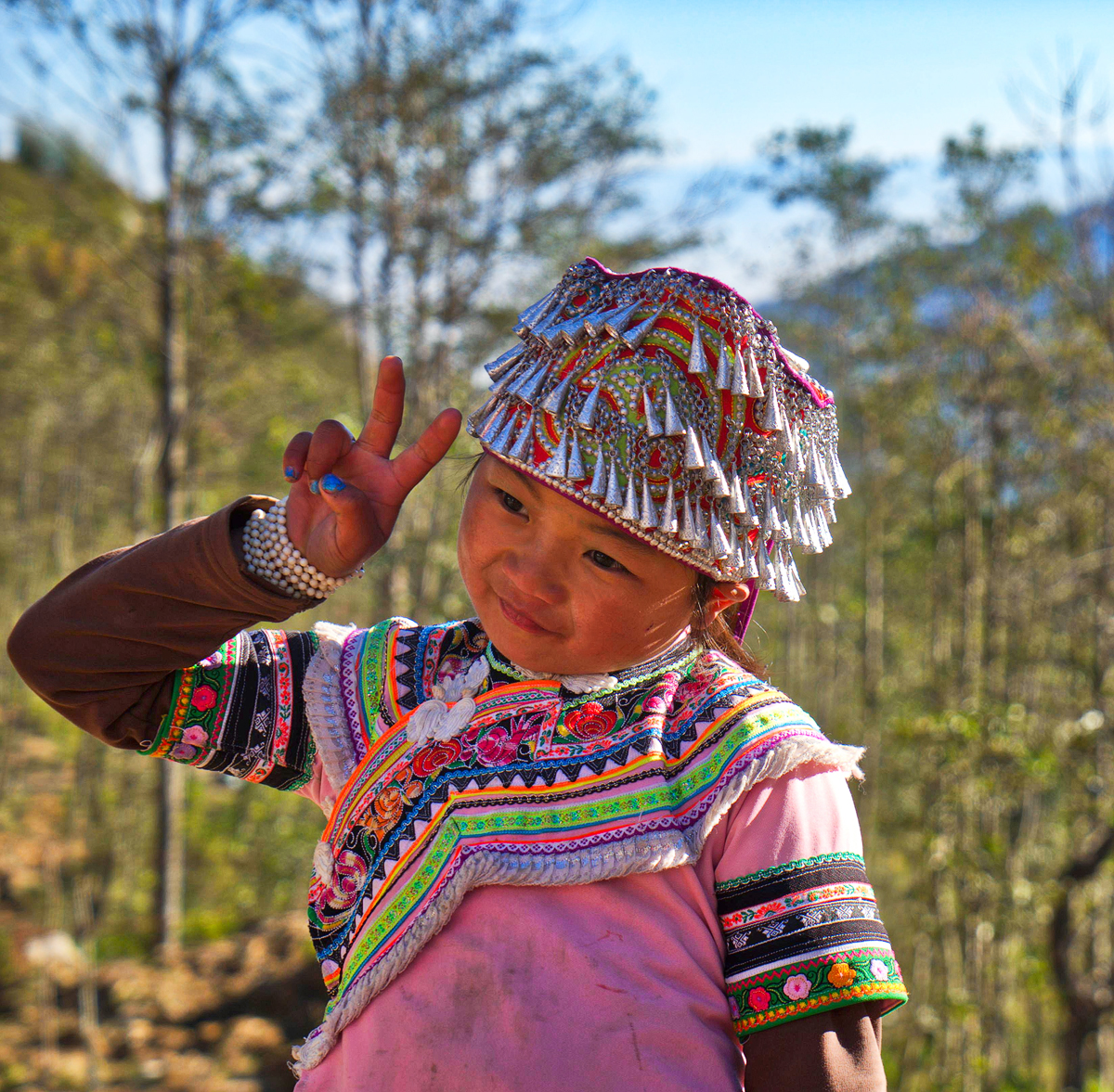 山水四季长流,梯田可长年饱水,保证了稻谷的发育生长和丰收。这里的梯田都围绕着山寨,风景都不错。爱春村,由于没有多少游客,老乡非常淳朴热情,小朋友也很有礼貌。这是路上遇到穿民族服装,卖鸡蛋的小姑娘,老Y买了她的茶叶蛋,她开心的比耶啦!