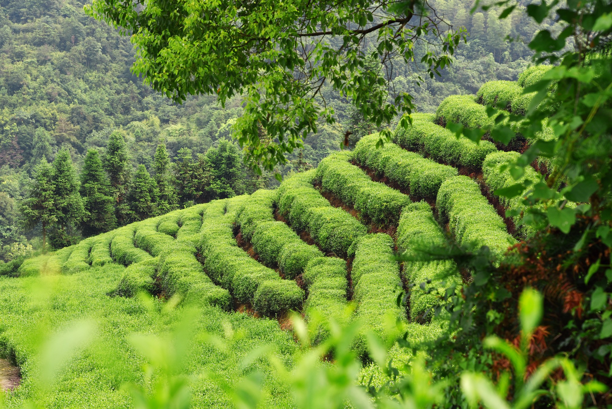 我们的车在山路上行驶,山坡上的茶树依地形错落有致分布,形成一条条优美的曲线,伴着声声鸟鸣,阵阵芬芳,仿佛走进了世外仙境般的山水田园,成为一道独特的风景。“中国三十座最美茶园”之一,果然名不虚传。