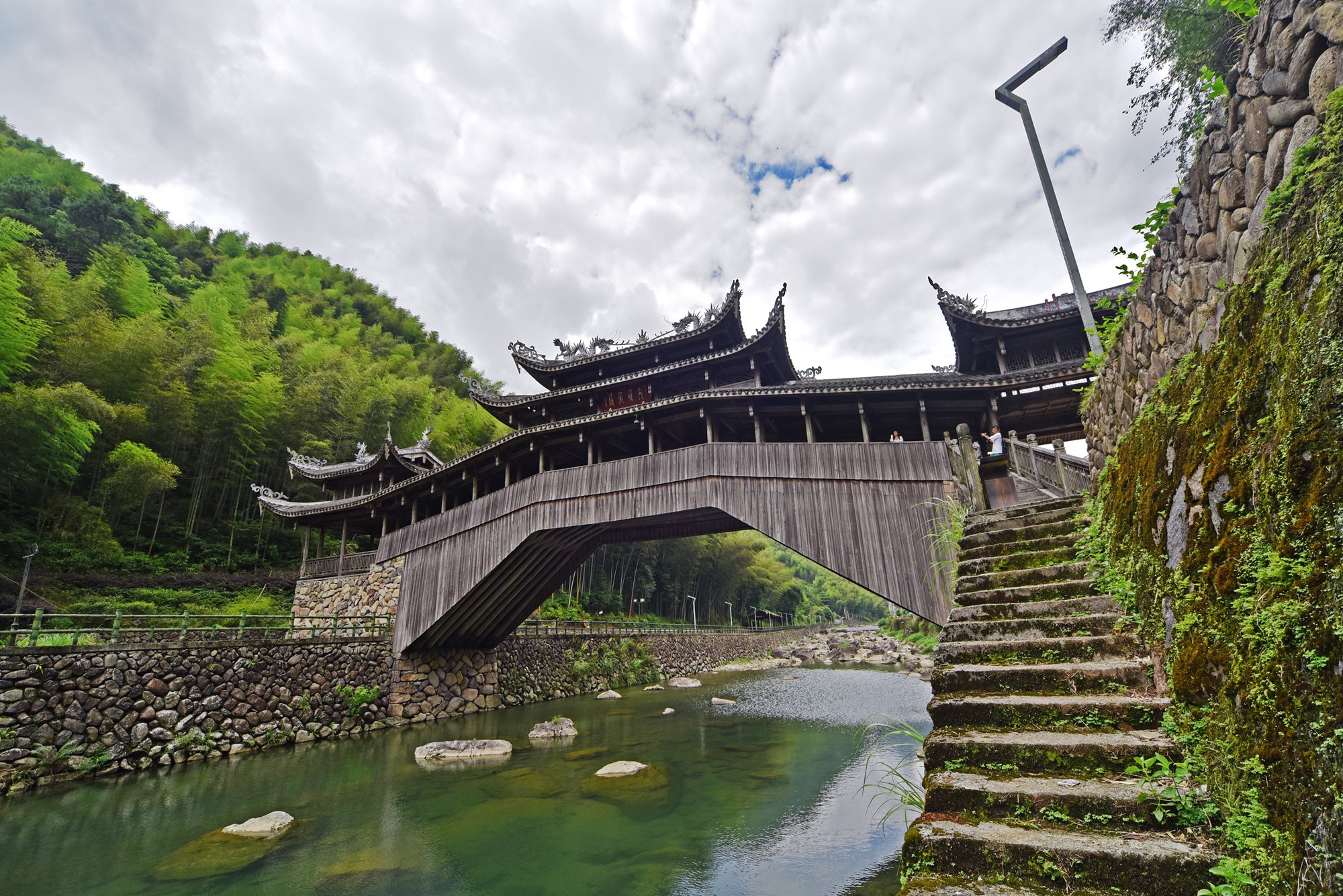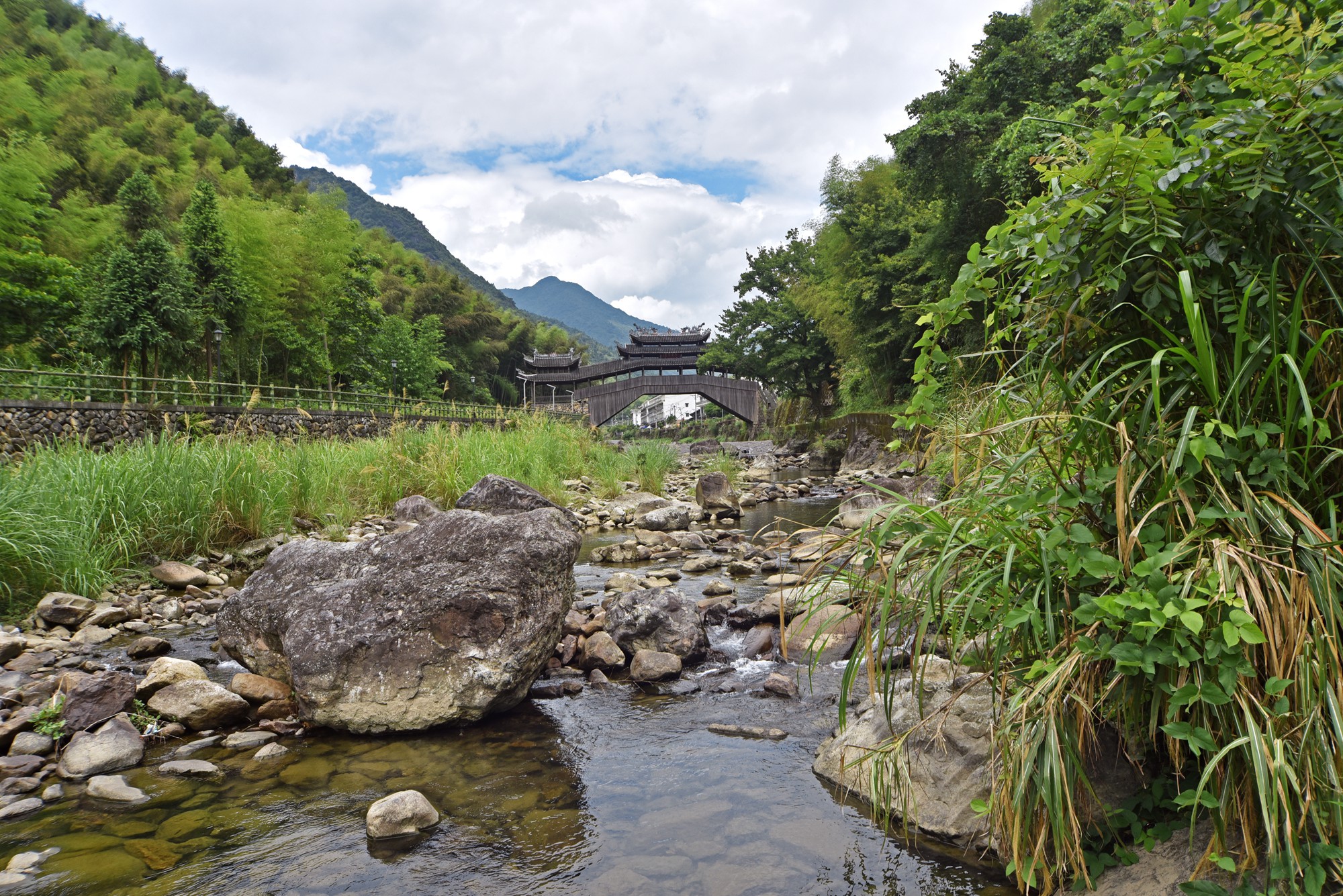 一路溯溪而上,我们来到了一座廊桥,这里位于莒溪大峨村,是“浙南九寨沟”莒溪大峡谷入口处,也是去“苍南西藏”天井村的必经之处。廊桥投资300多万,是全县首座全木质结构廊桥。
