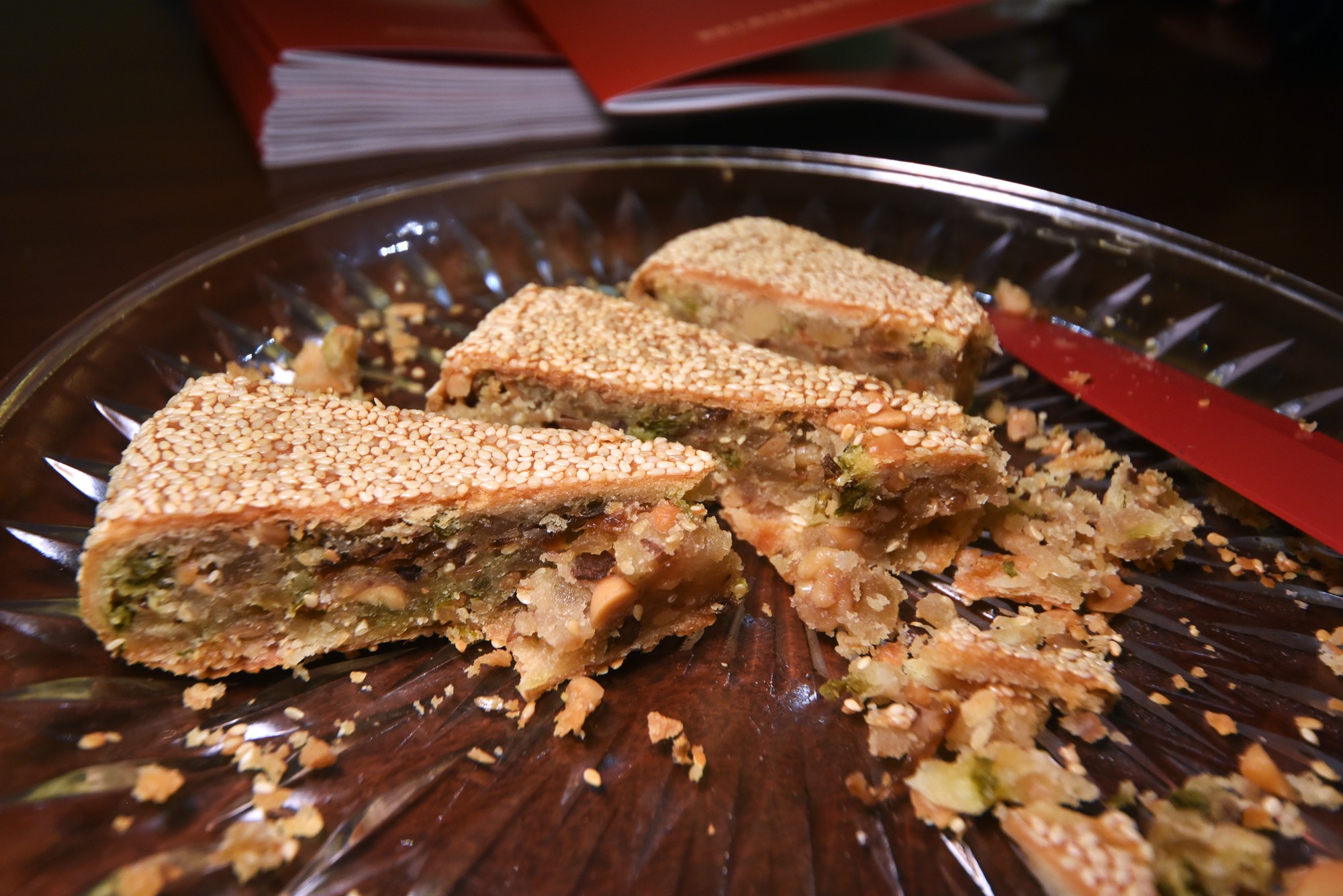不同于其他地方的月饼,桥墩月饼个头大,外面粘着一层芝麻,馅料以脊膘肉、花生、冬瓜条等为特色,经过高温烤制,里面的油脂熔化溢出,被面皮和芝麻吸收,吸满了油脂的外皮和芝麻变得酥脆,香气四溢。相传在苍南流传着中秋节外婆送月饼的习俗,寄托着对孩子健康成长的期望,但看月饼十足的用料和精美的包装,就能体会外婆满满的心意,一块月饼承载着亲情的味道。