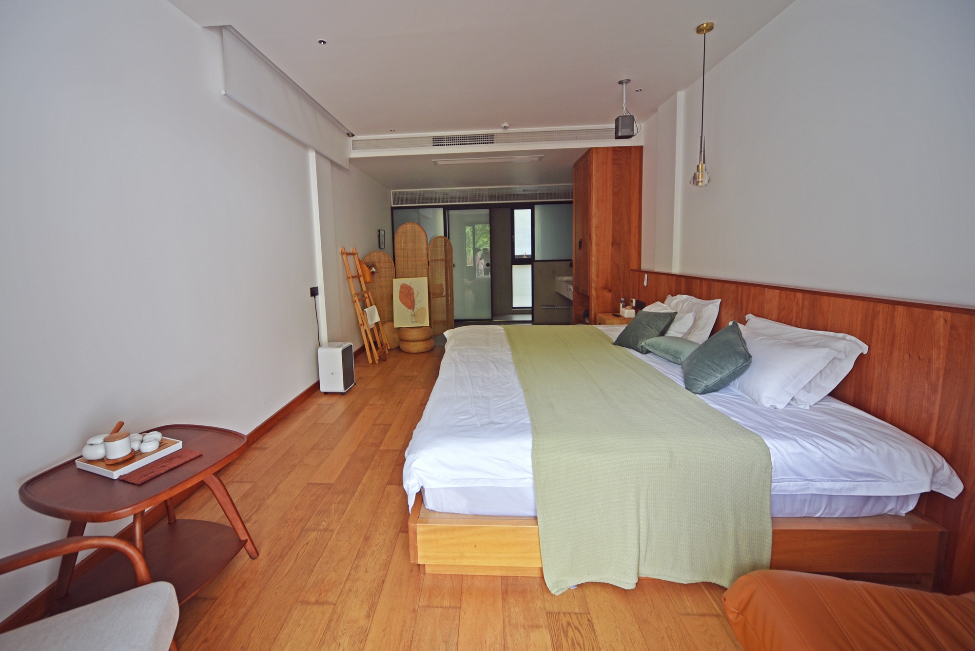 溪东民宿在设计风格上融入了大量的畲族风情元素,每间客房都配置了智能家居系统,有标准间、大床房、套房等多种房型,风格简洁、清新而富有韵味,有着如家般的舒适感和亲切感。我们的房间里还有一处临窗品茶的地方,用心的设计让房间已不仅仅满足休息的需要,显得更有情调。