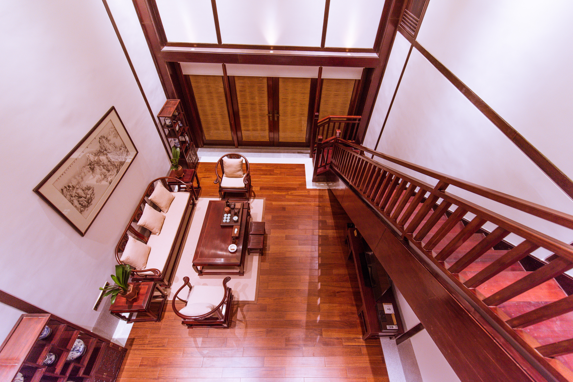 从高高的楼梯拾阶而下,会有俯视众生之感,我为什么来这,我寻找的是什么。这里的房间大多都是以昂贵的红木家具,让人融入大自然的怀抱。