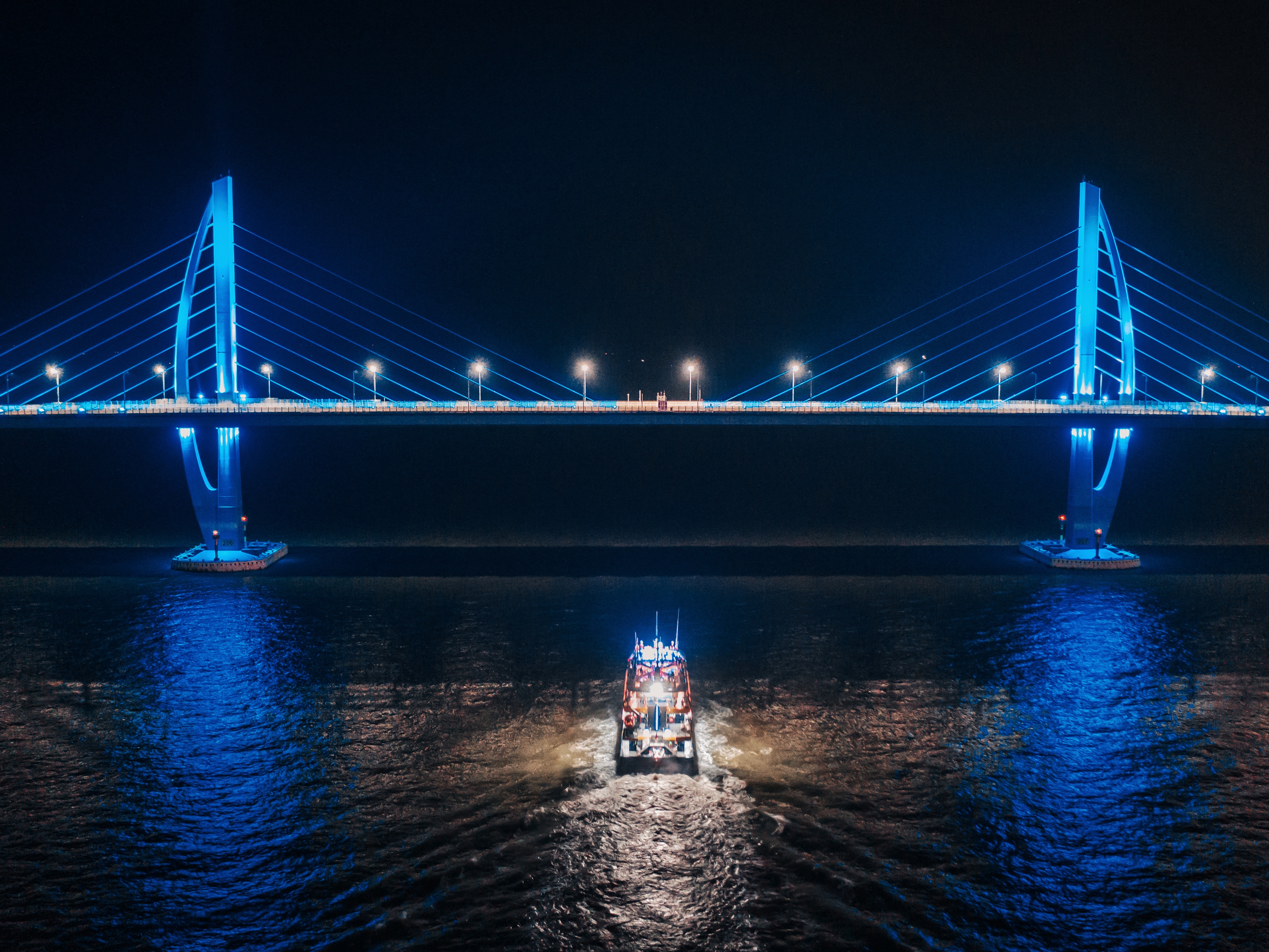 乘近岸主题式迷你邮轮出海,近观“"现代世界七大奇迹"”港珠澳大桥缤纷夜景,赏鉴海上巨作《九洲船说·相约大海》!