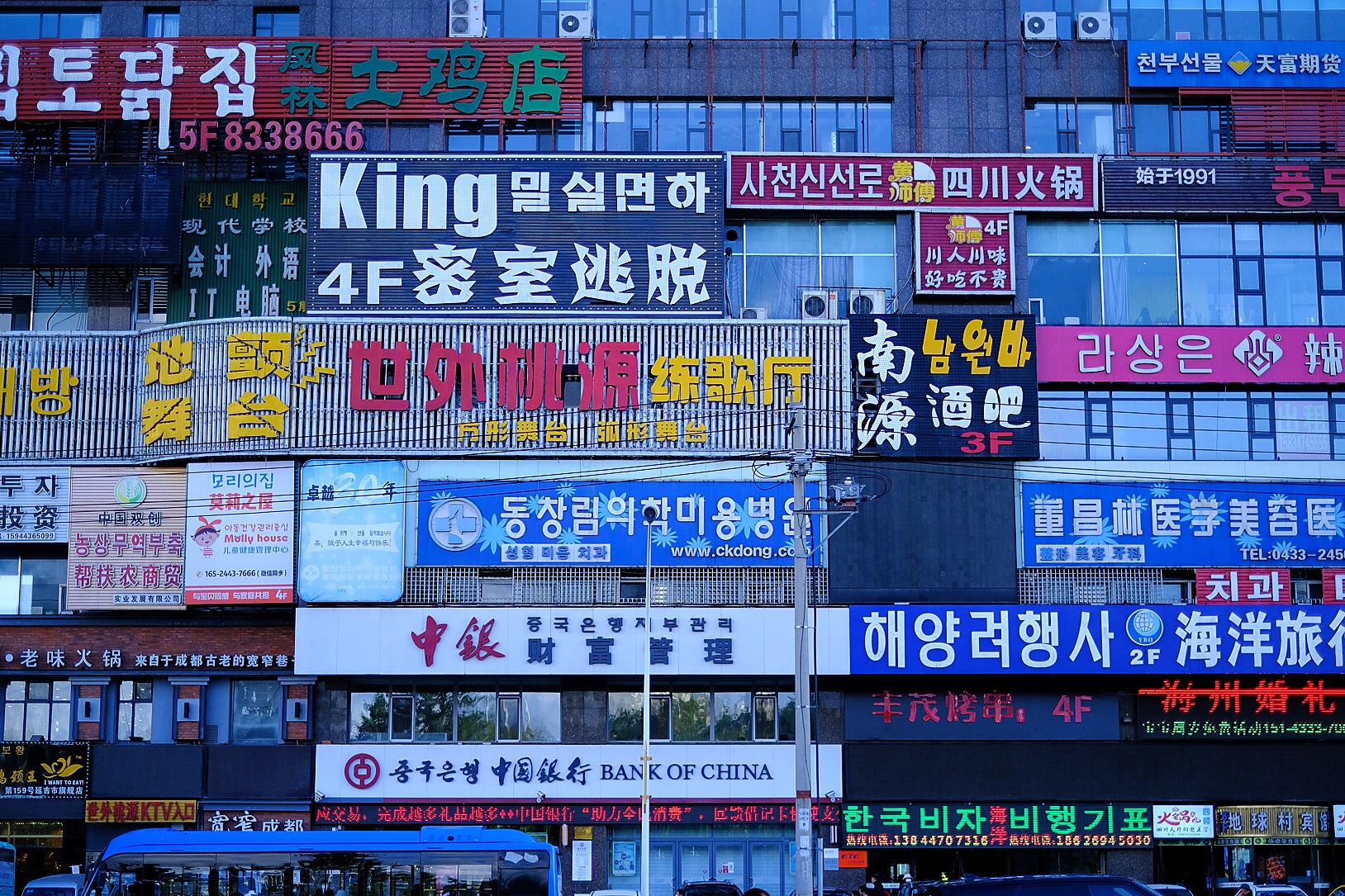 延吉是吉林延边朝鲜族自治州的首府,朝鲜族人口在50%以上,所有路牌、街边灯箱广告牌、公交播报都是中韩两种语言。