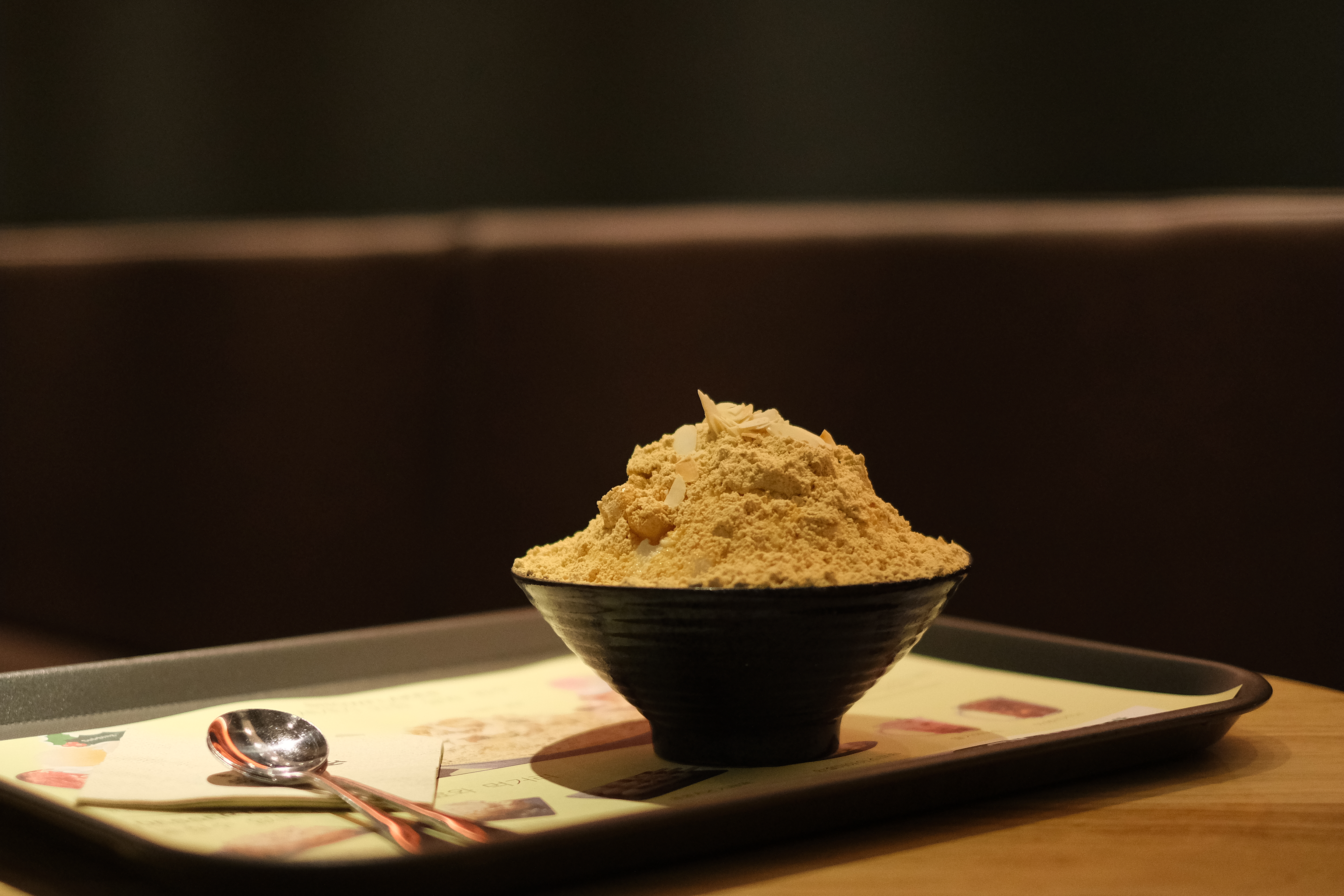 满满一大碗,上面撒的是豆粉,豆粉有种清新的质朴感,跟冰搭在一起竟然有惊喜的味道。