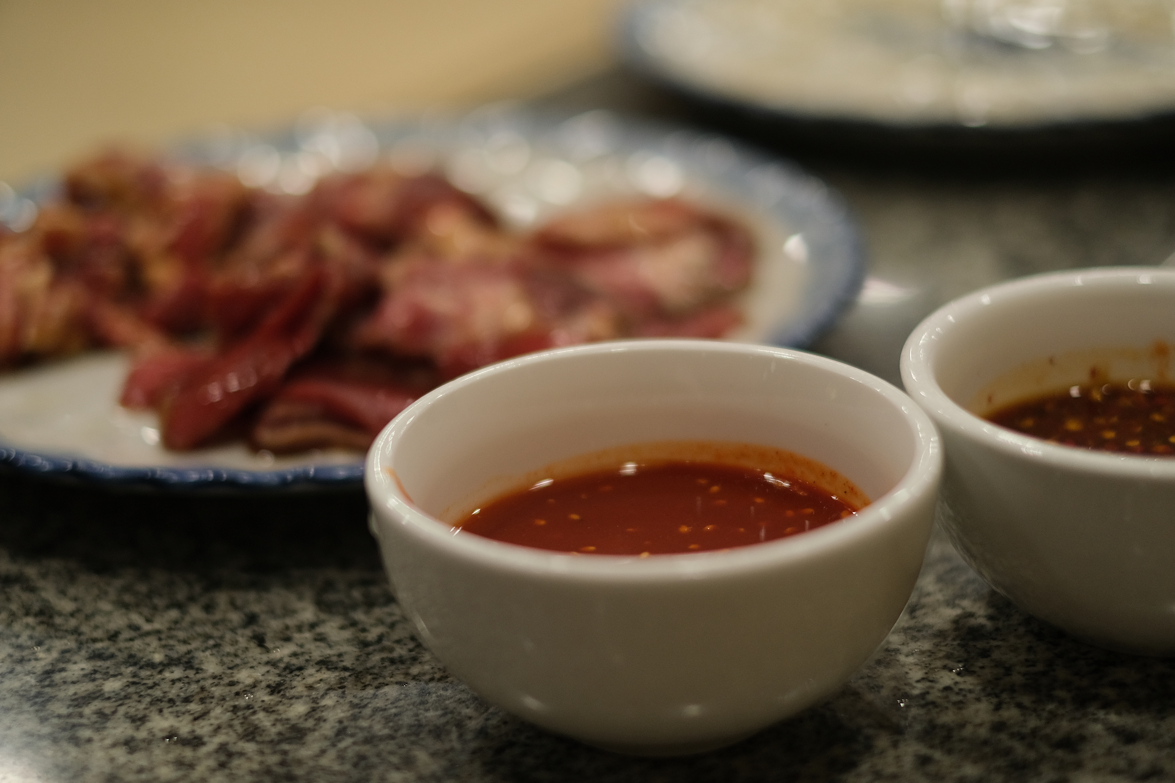 我因为技艺不精,烤焦了不少,但是味道竟然鬼使神差地很可以。加上店里的蘸料之后更加加分。