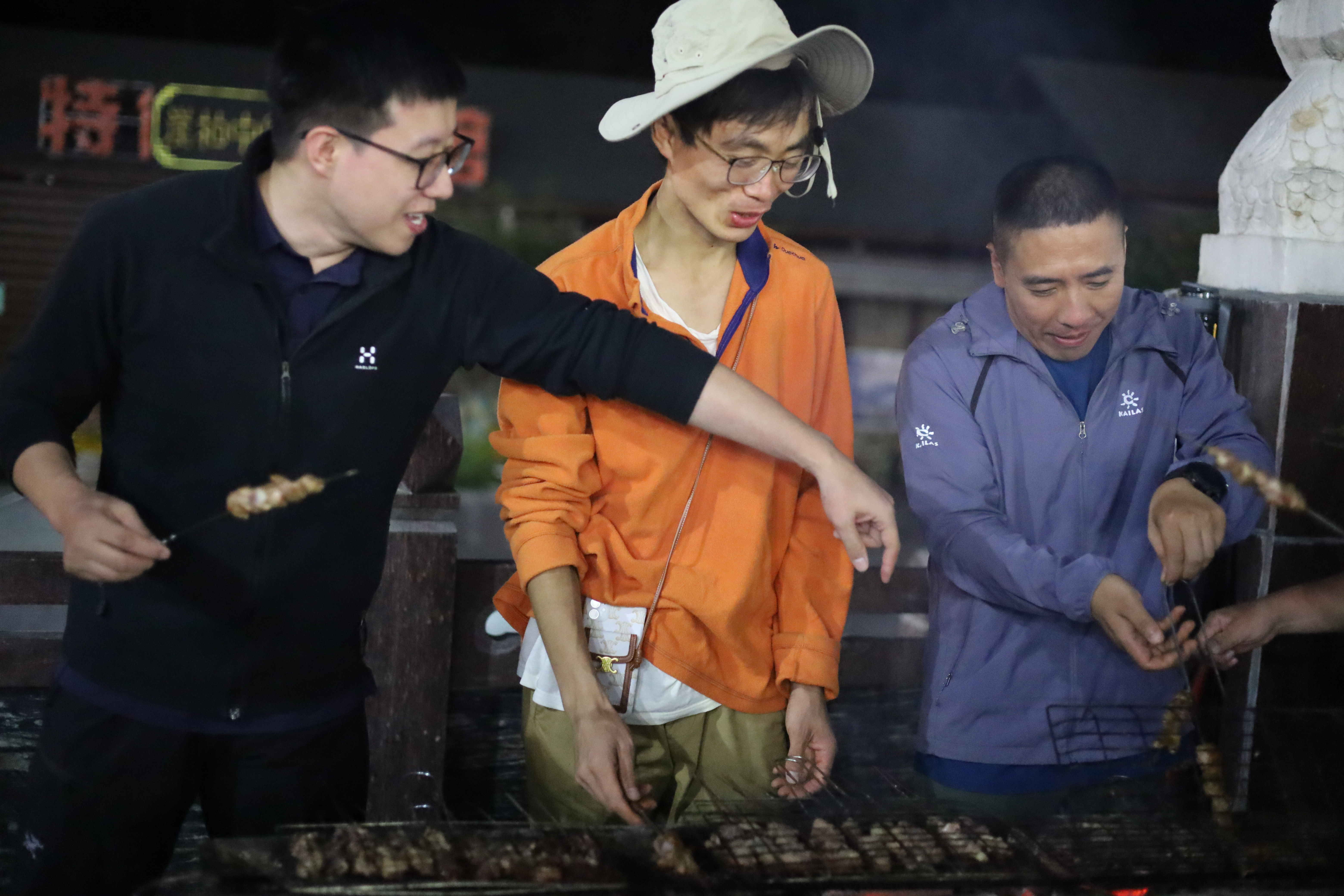 👇羊肉BBQ,两位领队秒变烧烤师傅!