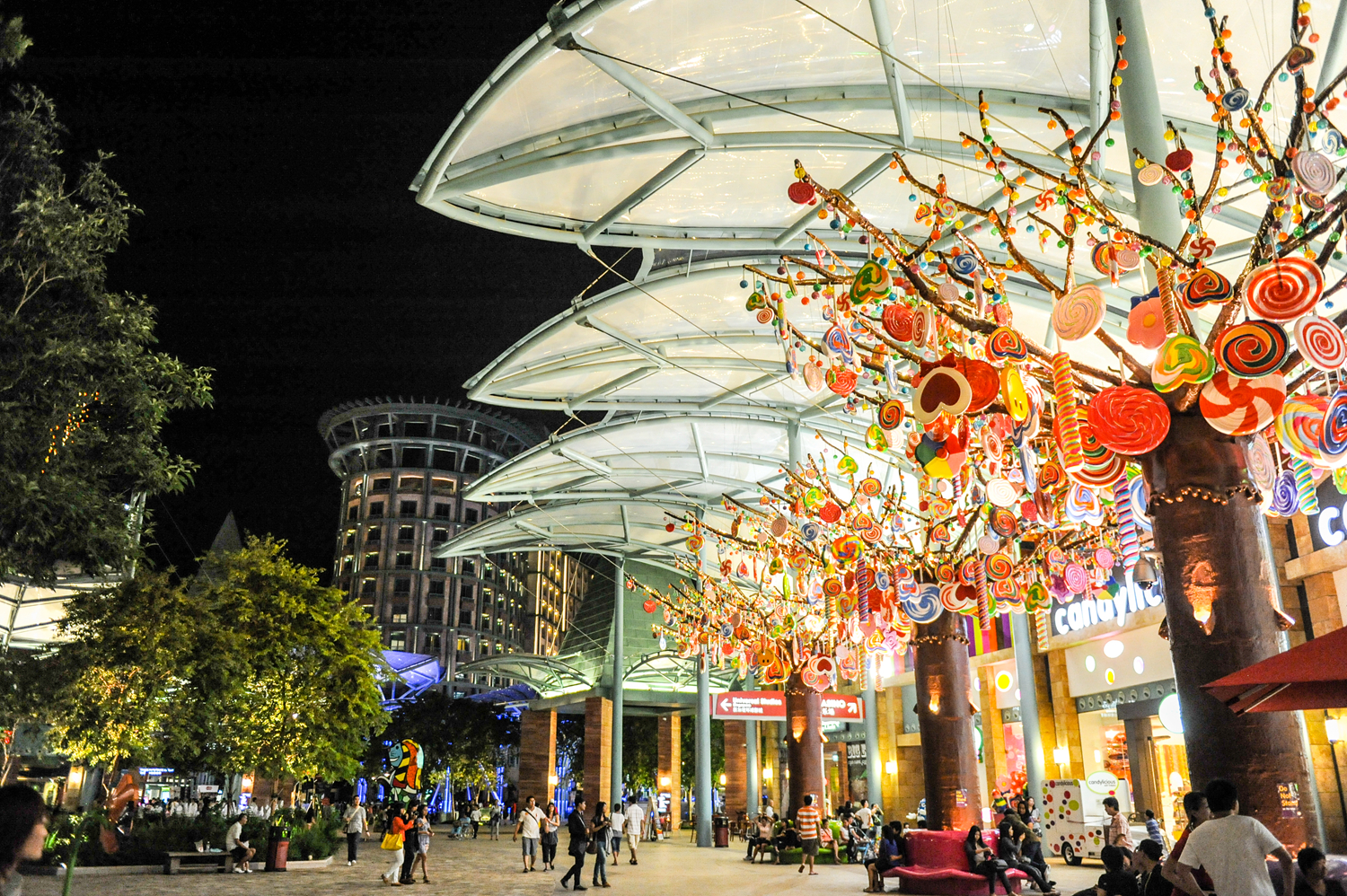 据说圣淘沙原本的意思是平静而安详,但现实中这个新加坡最迷人的小岛却是绚丽而热闹的。这个和市区隔海相望的小岛是一个集合了娱乐、购物、博彩等多项设施的大型休闲中心。岛的南岸有长度超过2公里的海滩,西面安置着二战英军留下的西罗索炮台、两个高尔夫球场及7间酒店。比如圣淘沙名胜世界、新加坡环球影城、蝴蝶馆、海豚世界、昆虫王国等。人们来到岛上,主要就是体会度假岛上各色的休闲娱乐活动,水上运动、高尔夫、血拼、看演出,甚至还有博彩。总之应有尽有。