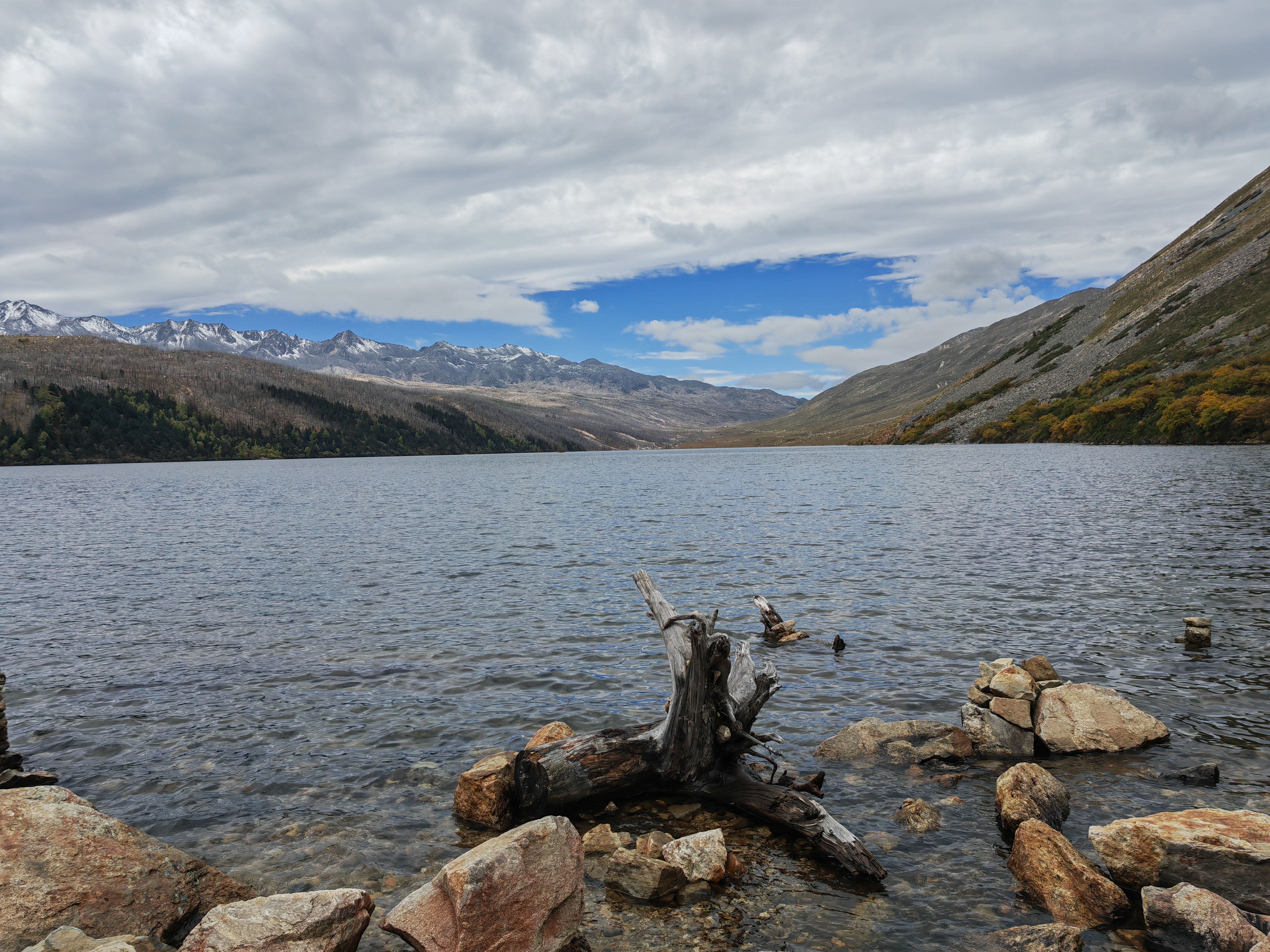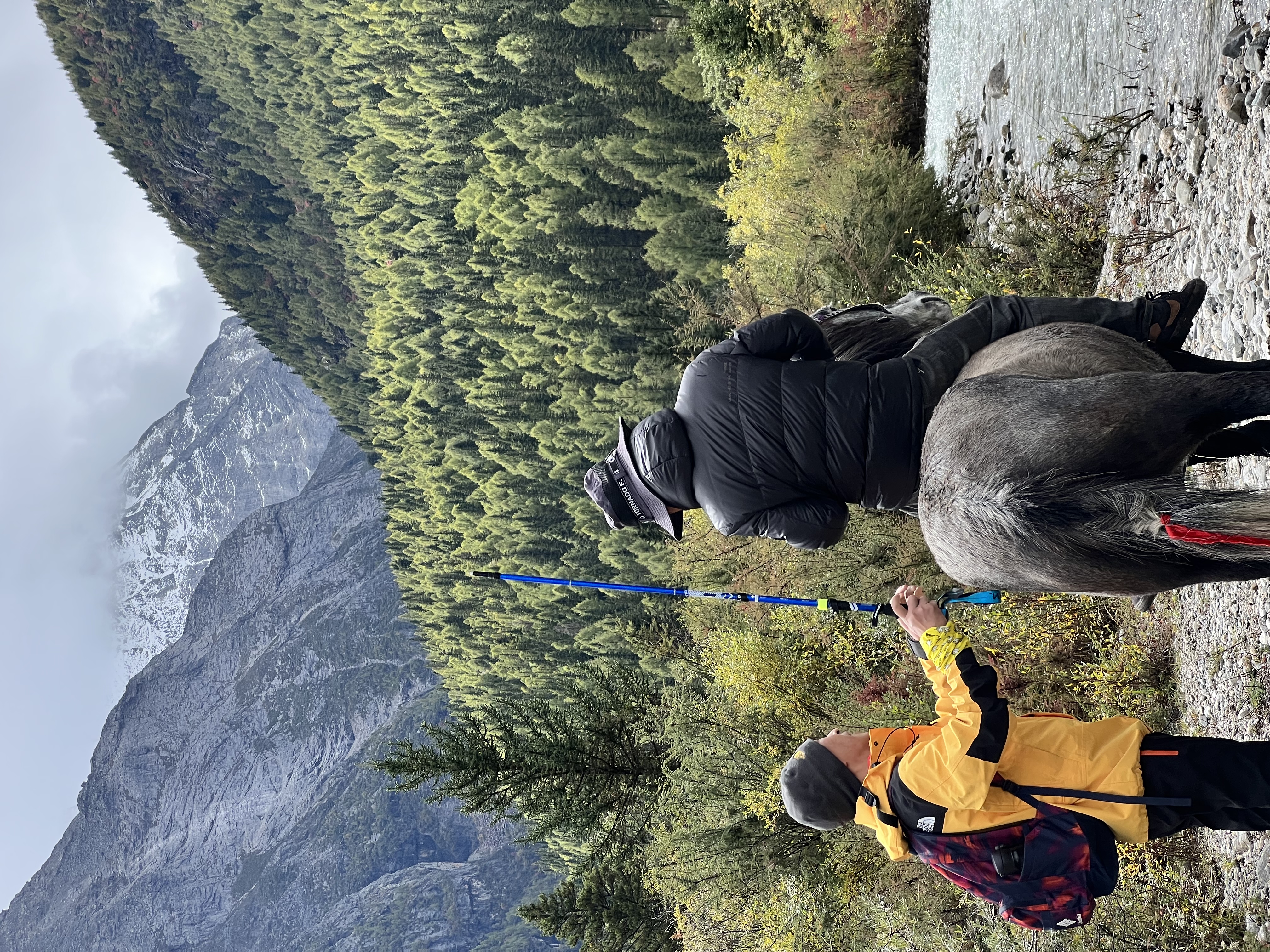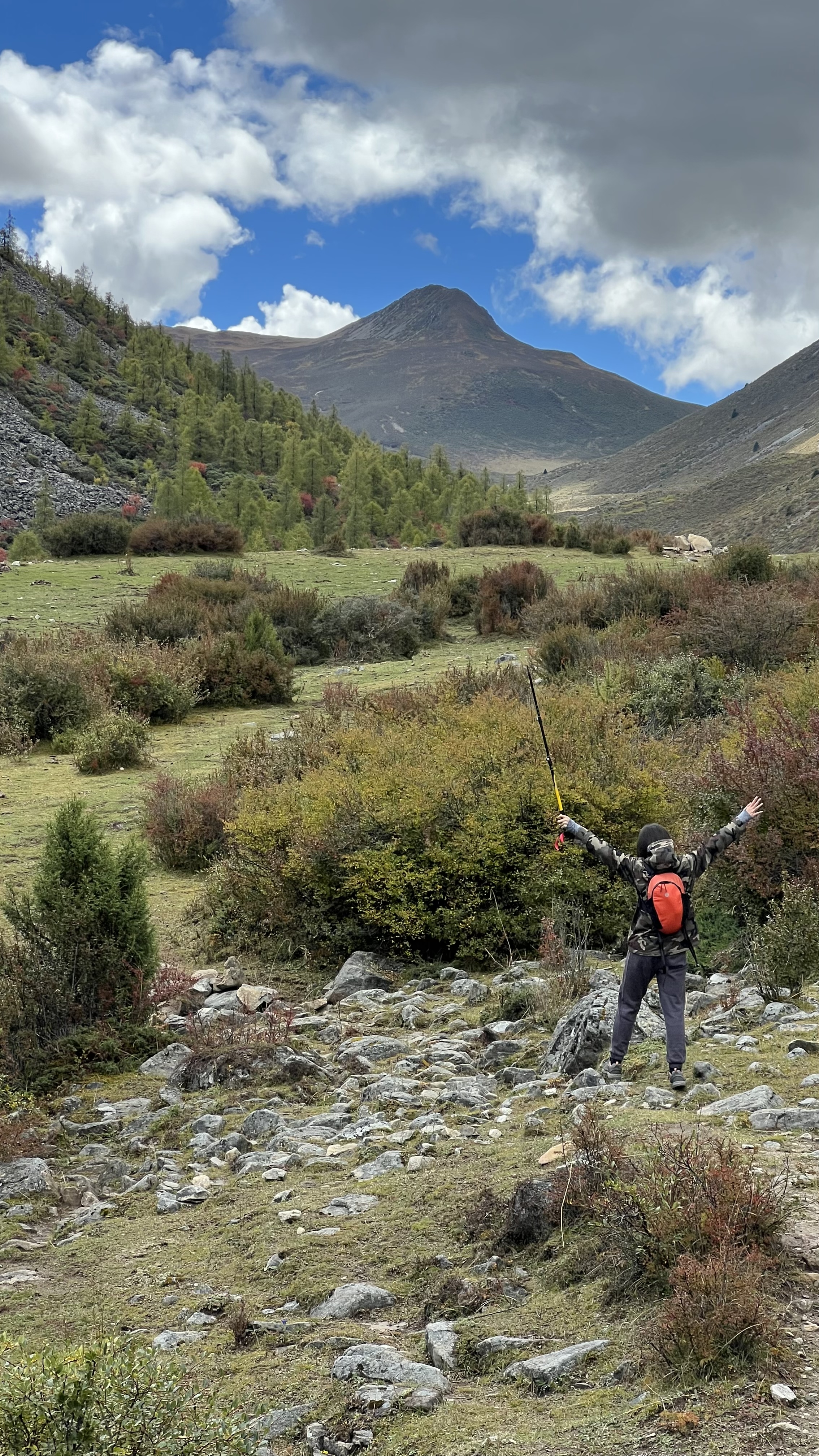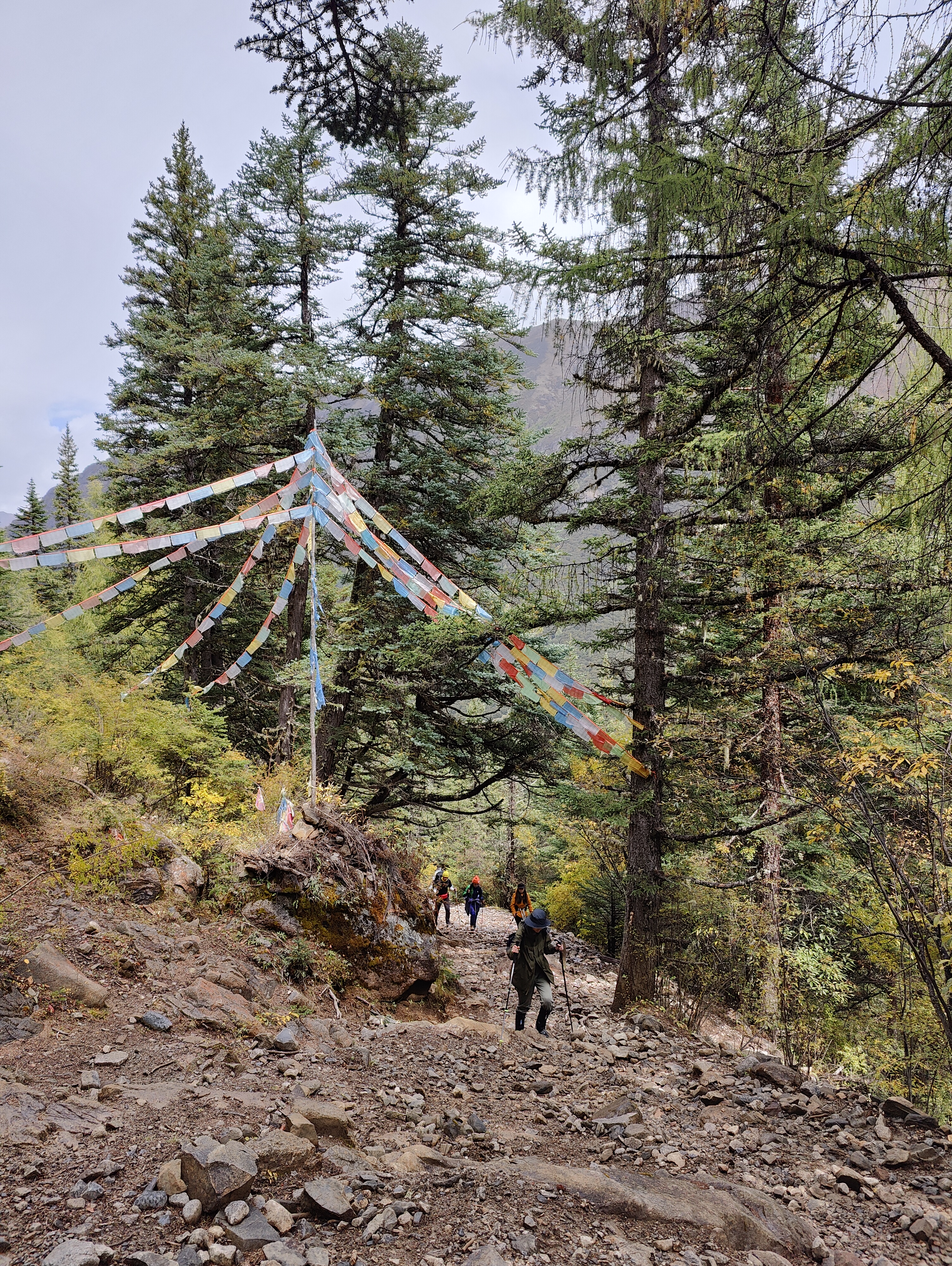 有惊又险——惊的是巴松服务区开始徒步需要过河,水流湍急,且有多处涉水路段,河水冰凉刺骨;险的是过河路段仅有独木一支,过河后就是海拔的剧烈爬升,稍有不慎就会跌落