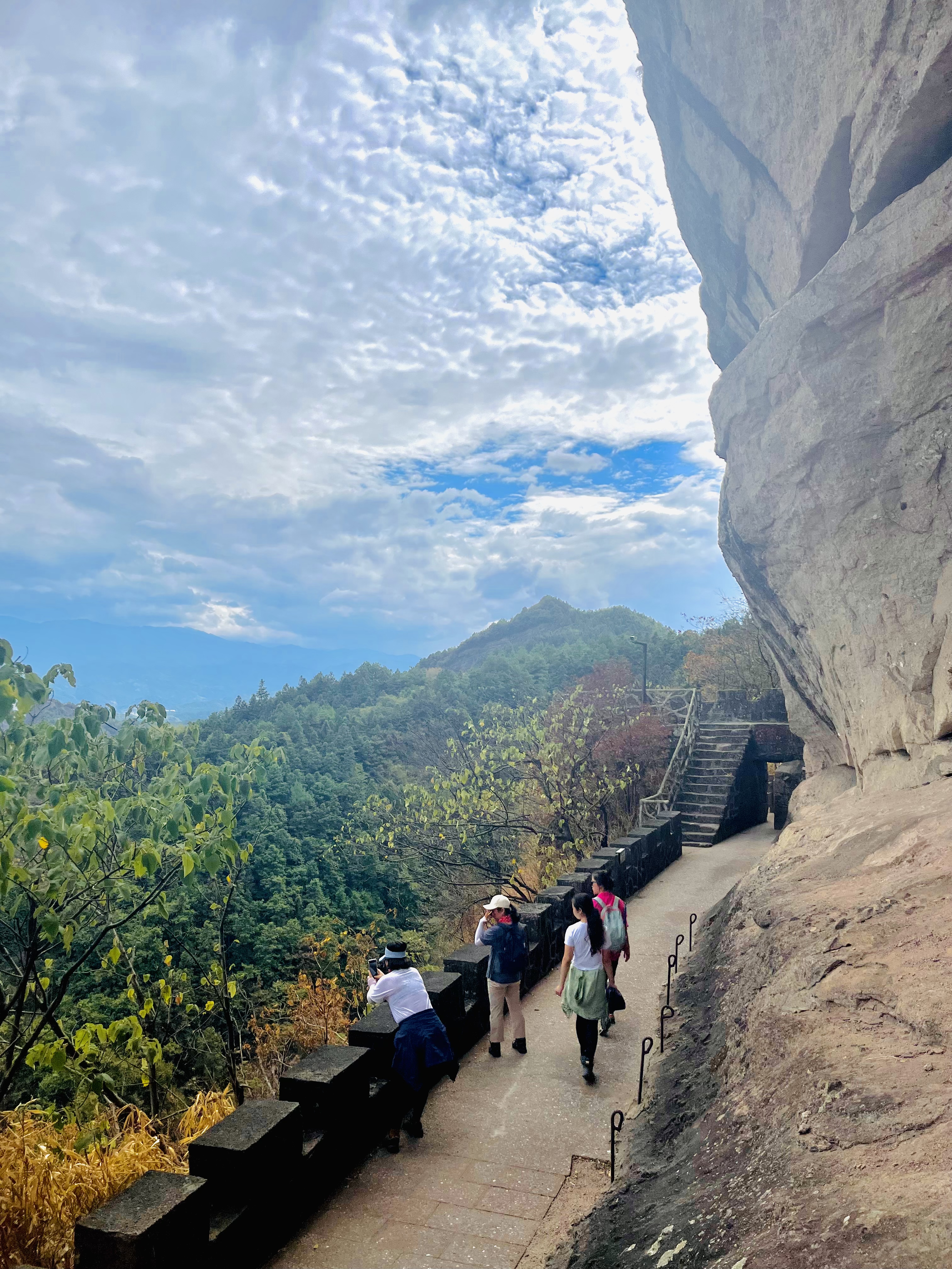 八角寨最雄伟壮观之处要数东北角的龙头香和第二绝的鲸鱼闹海,站在危高的龙头香眺望远方,丹霞怪石林立,鲸鱼闹海欢腾,米筛寨巍然屹立,蜡烛峰直指天穹,神奇的景色美不胜收。