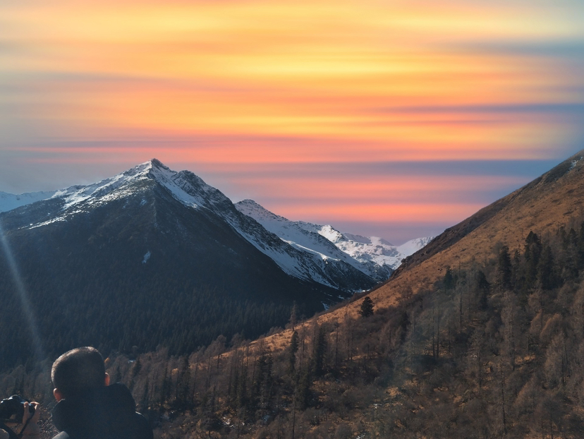 在行车路途中,大家都很开心,一路到达巴郎山山脚后,我们就可以把相机,手机准备好边走边拍沿途美景。由于巴郎山垂直海拔落差达到1200米,随着海拔高度的上升会不断变化。若人品爆棚则有机会欣赏到壮阔的巴郎山云海。翻越垭口四姑娘山及其附属山峰映入眼帘。