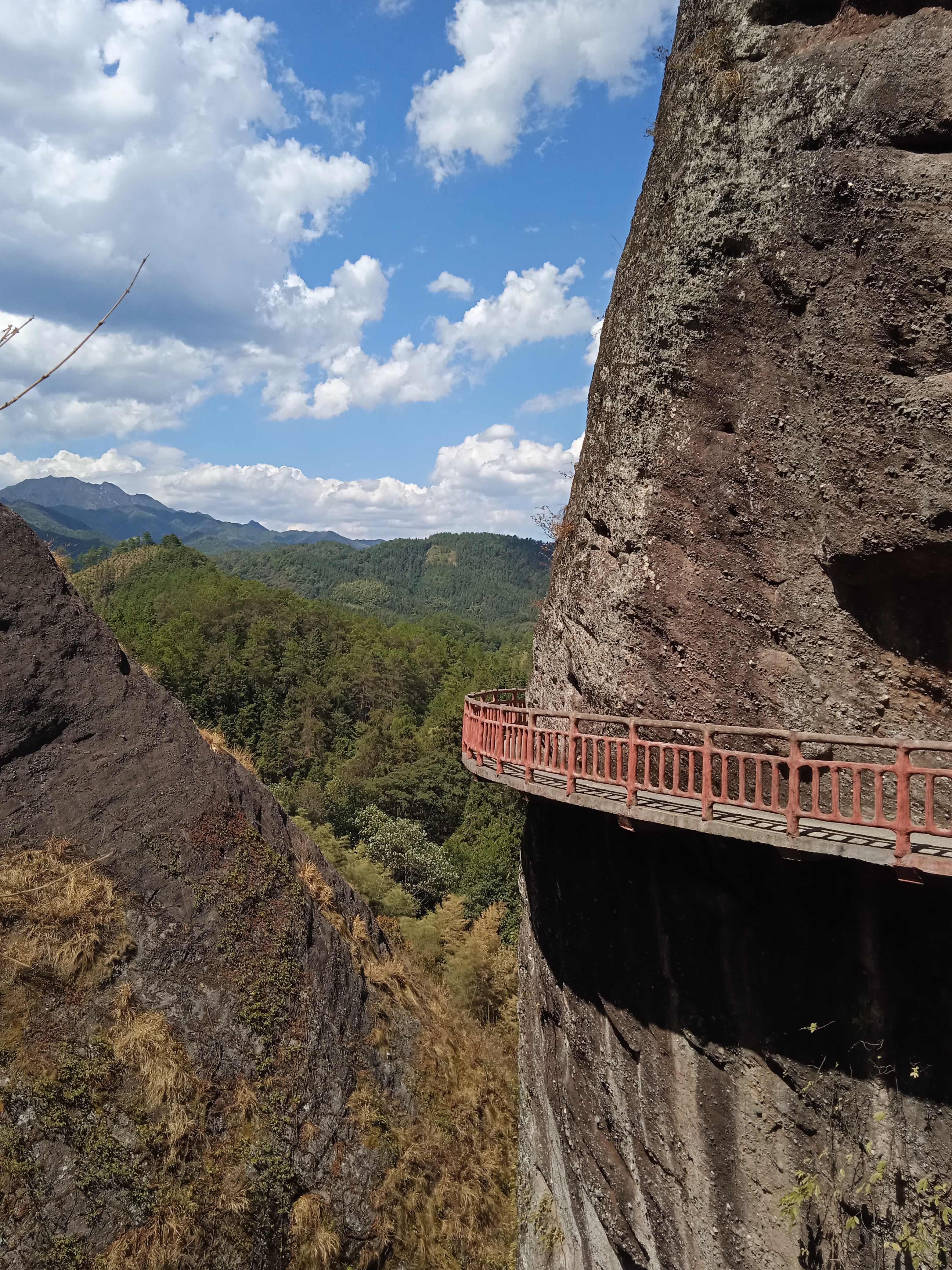 晴时,蓝天、白云、绿树、赤壁融为一体,构成一幅气势恢宏的天然画卷。雾时,峰峦隐没云海,若隐若现,似千条鲸鱼闹海。山顶有始建于南宋古庙云台寺,烟火千年不断。