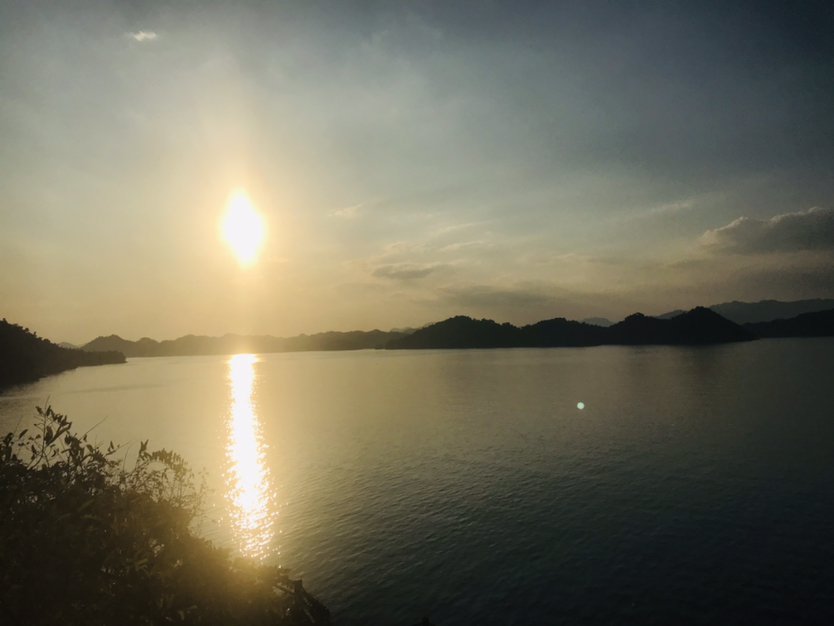 10.2 D2 从下姜村出发,骑行4km至隔壁 淳安县枫树岭镇卫生院做核酸。继续顺时针方向骑行,路过汾口镇、红叶湾景区、淳安县千岛湖中心景区、三潭岛景区、彩虹桥、上江埠大桥、港口桥,至加油站折返,回到517骑行驿站还车,返程途中拍摄千岛湖夕阳美景。晚上入住县城中心 龙门宾馆(“龙门客栈”,三无酒店),318元双床不含早。第二天骑行123km。