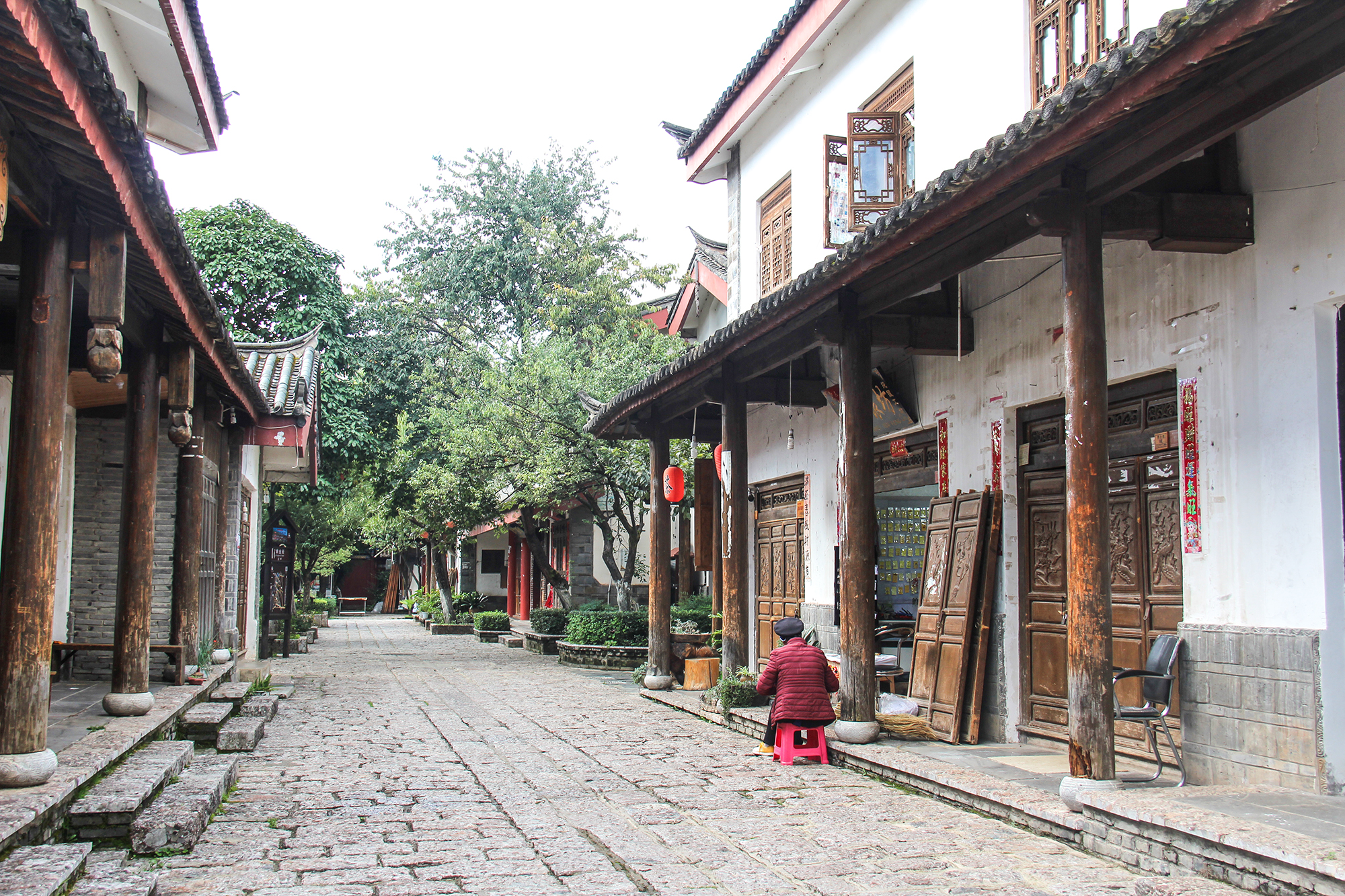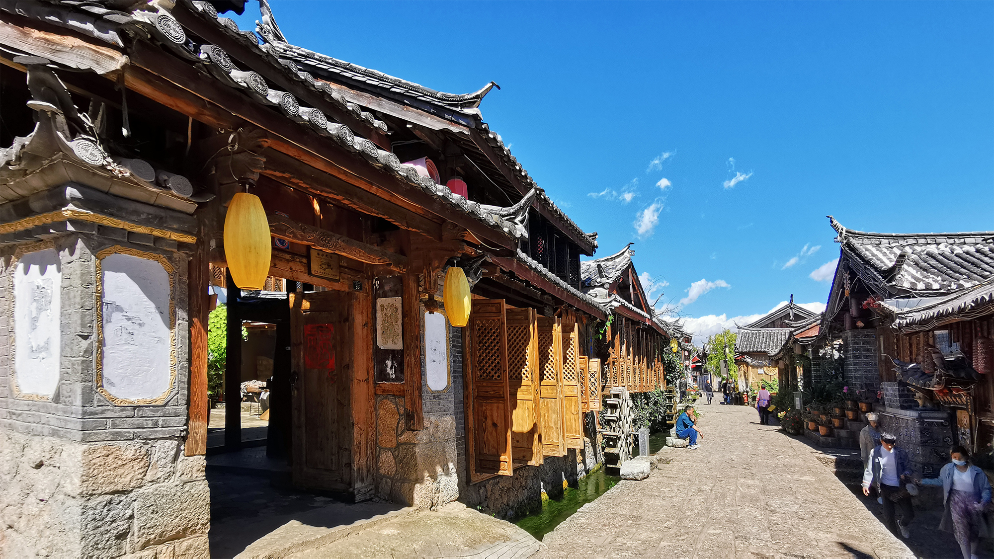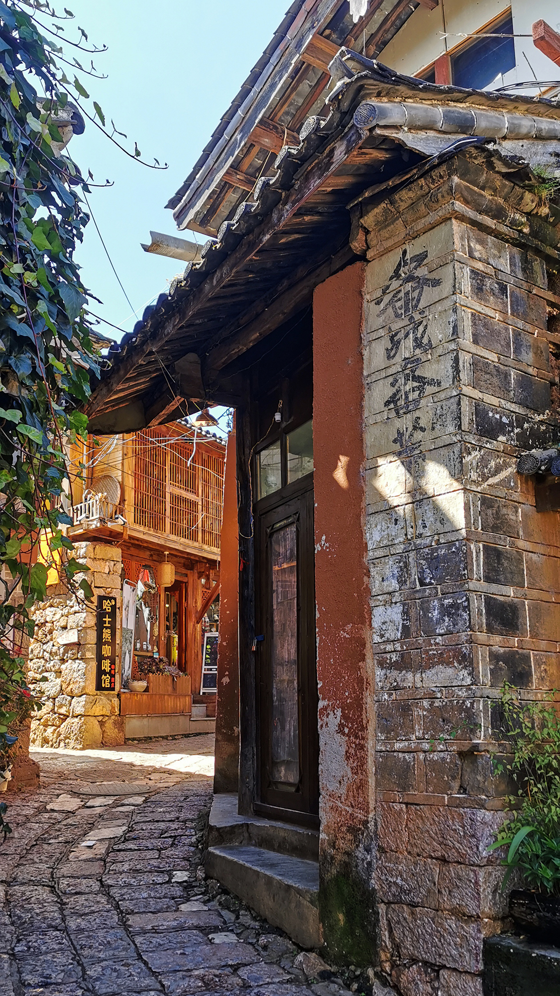 官门口,古时这里就是贫富的分界线,进了官门口,就进入了木府的管辖范围了。留意脚下的路,石板路中间竖着铺的是官道,两侧横排的则是民道。