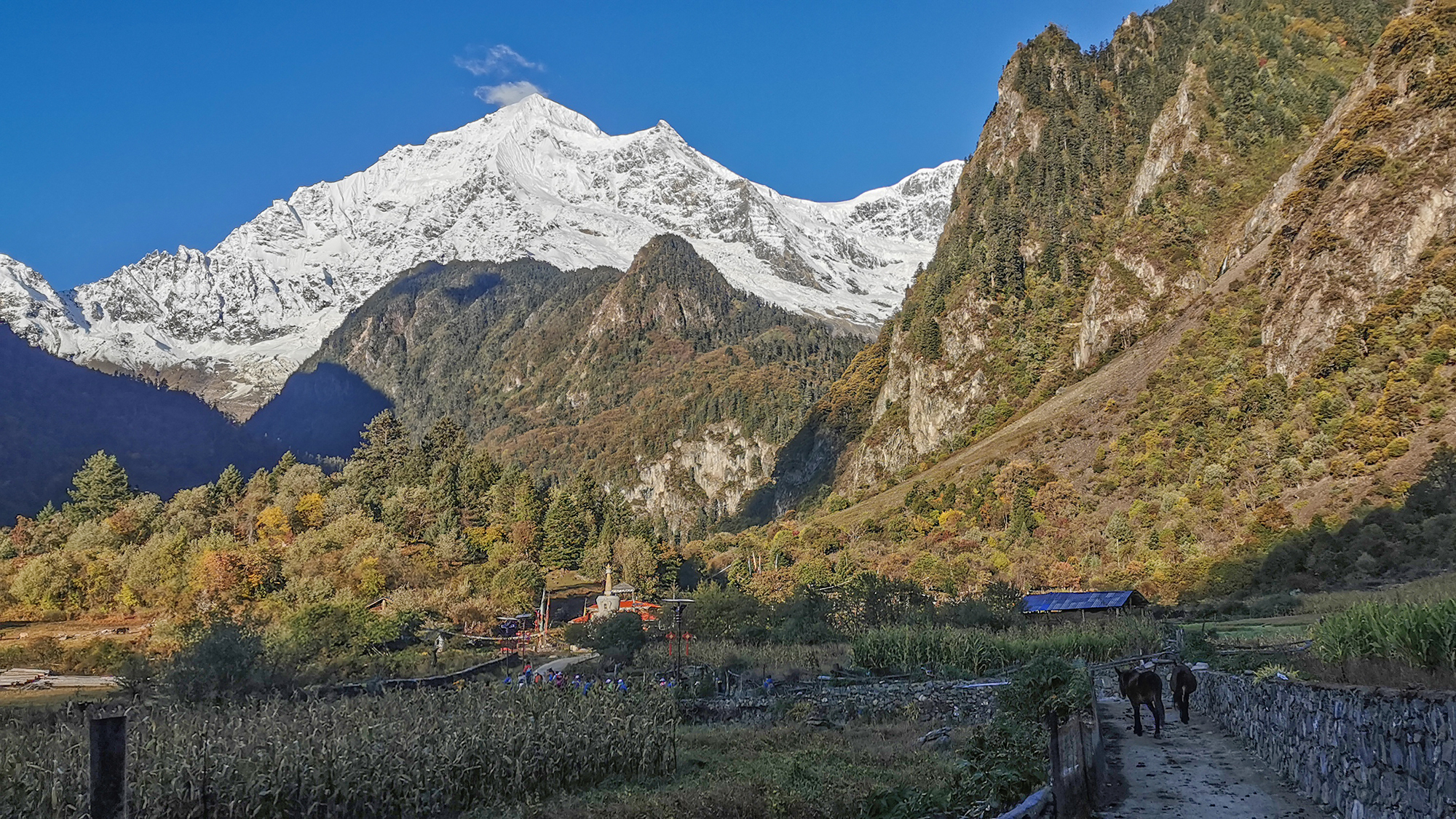 雨崩 ”藏语意为堆放着经书的地方。在这个梅里雪山脚下的小村,比蓝天更占据视野的是雪山。缅茨姆(神女峰)和吉娃仁安(五冠峰)与它相依相伴,再往高处走,卡瓦格博似乎也触手可及。