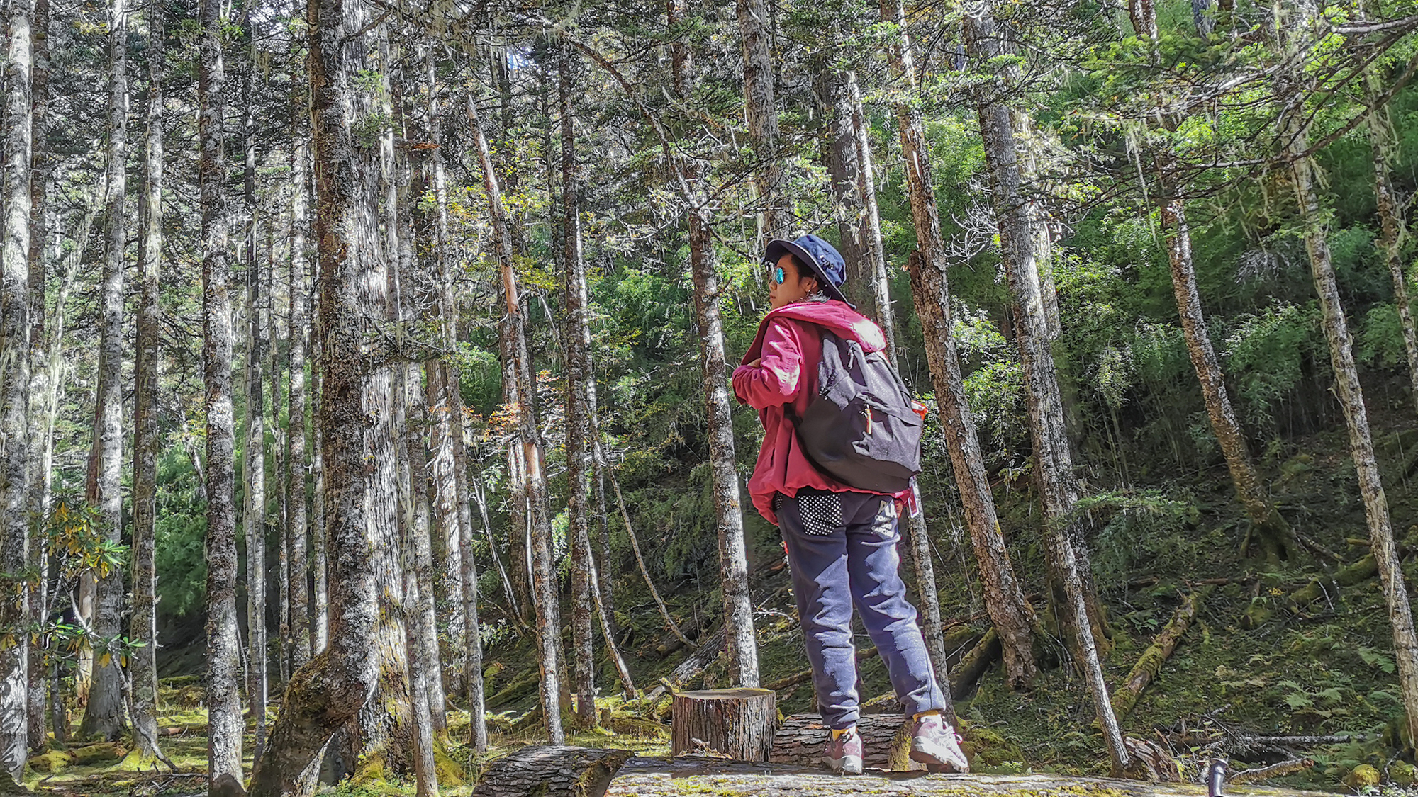 徒步,是最为原始、也最为直接的旅行方式,而且能在这个过程中不断收获惊喜和意外。走过架在溪水之上的独木桥,穿过巍巍雪山脚下的原始树林,越过山涧河谷的湍湍河流。在行走间,感受到自己在大自然中的渺小,也更加尊重生命,敬畏大自然。随着山顶的临近,海拔逐渐增高,山路的坡度也逐渐增加,面对环境和体力的双重挑战,不断突破着自己的极限,这一次的旅途是对大自然的挑战,更是对自己的挑战。