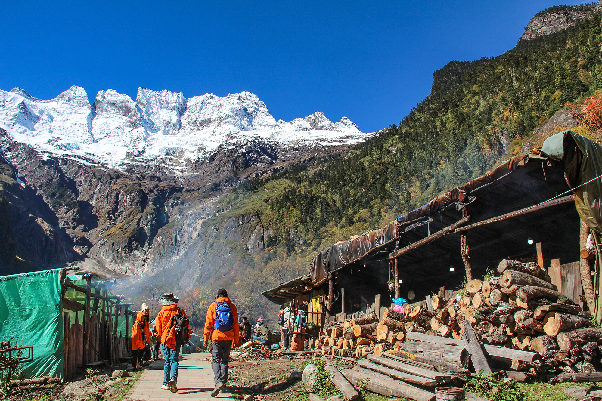 坐下来喝一口姜茶,再把保温杯续满,向雨崩村进发。