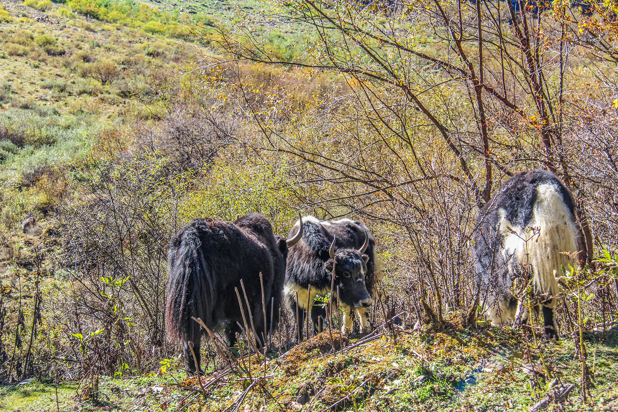 雨崩徒步第四天,尼农峡谷。尼农峡谷位于雨崩河谷下游,是除西当外进出雨崩村的唯一路线,全程20多公里,大约需要4小时。虽路线更长,但全程下坡,相对舒适。这段路大部分都是只有一米宽的羊肠小道,一旁是陡山峻岭,一旁是悬崖深涧,景色与雨崩村大为不同。道路平缓,阳光明媚,路旁野花盛开,有一种走在乡间小路郊游的乐趣。