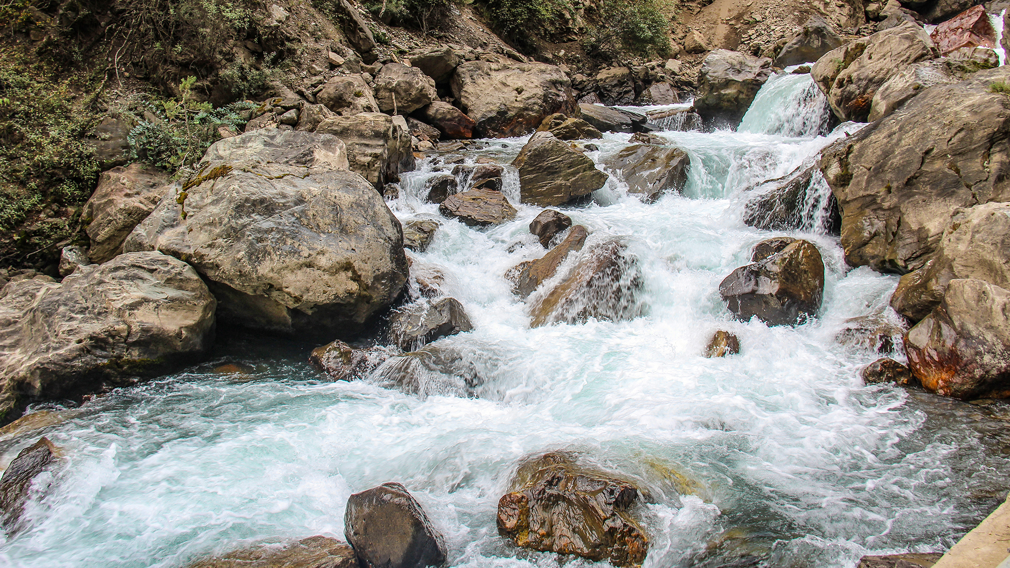 雨崩河水清澈,奔腾向前,河水的轰鸣声一路伴随~~