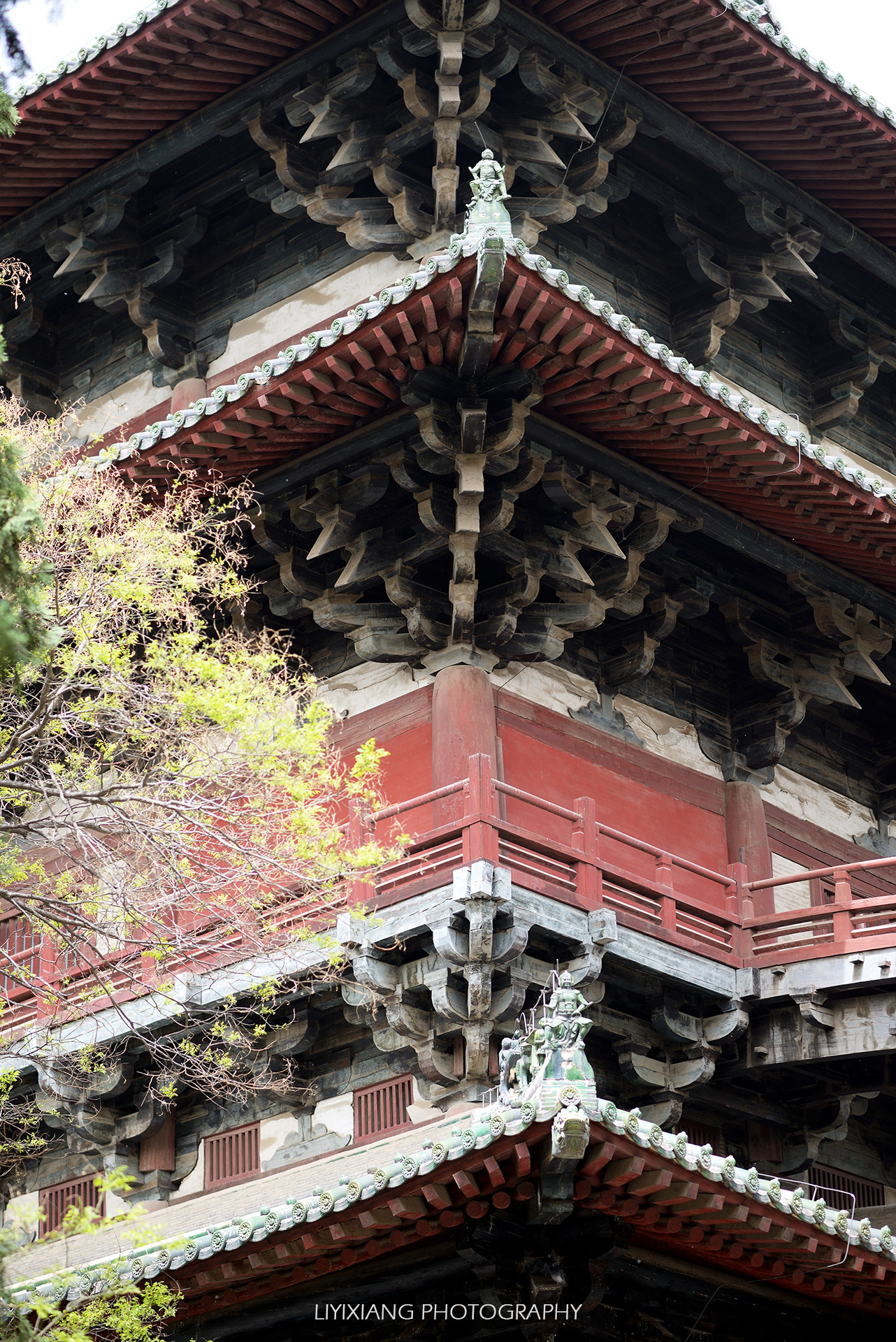 戒坛的东北和西北侧,各有一座建于北宋,平面近似正方形的二层阁楼式建筑。翔哥先去的是位于西北侧的转轮藏阁,这座建筑结构尤为精巧,是宋代木构之杰作。梁思成在《真定调查纪略》写道:“藏殿上部的结构,有精巧的构架,与《营造法式》完全相同的斗拱,和许多许多精美奇特的构造,使我们高兴到发狂。”