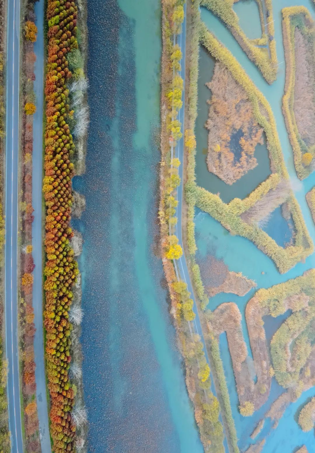 上万亩的芦苇荡被六十余条水道切割如迷宫的泗洪湿地景象,真堪称奇景。