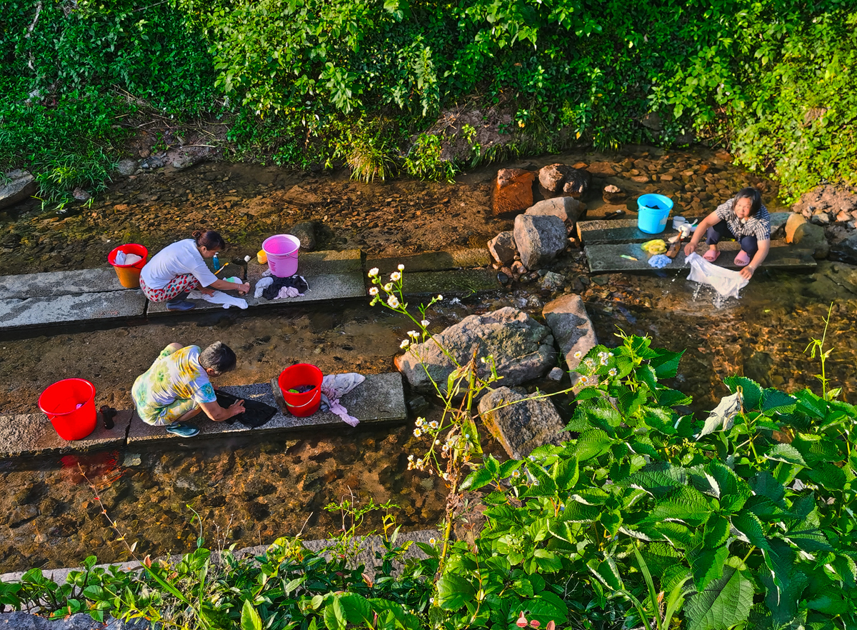 清晨村里到小溪边洗衣的妇人真不少, 查济 的村民们保持着轻缓自在的生活节奏,至今还保留着在溪水中浣衣的习惯。也许他们舍不得家里的自来水?