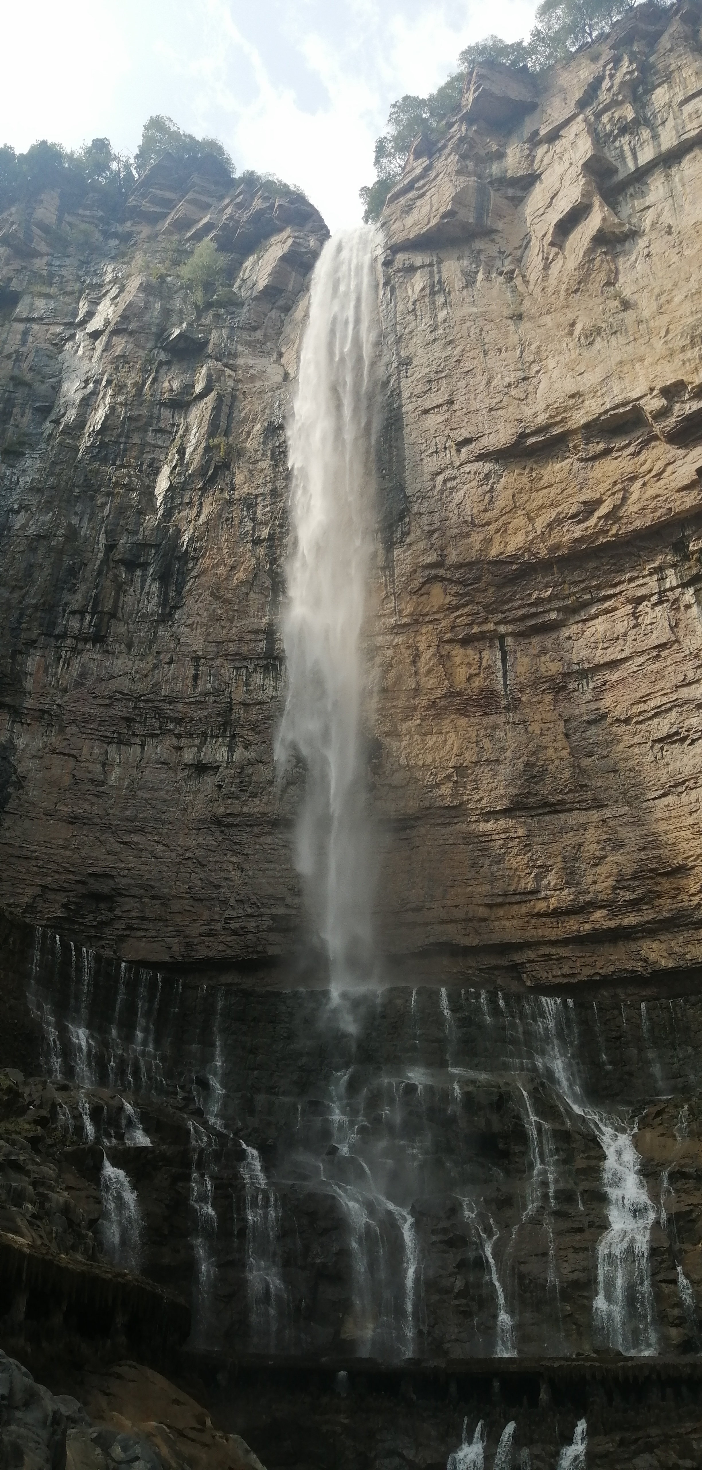 休整结束礼遇前行,接下来的路就平坦的很多,大家的步伐也相应的快了起来,很快便到达经典的打卡点老龙口,这里是老龙口瀑布的上游,丰水期山上的水汇集到这里,从这里飞流而下,绝美的自然景观呈现在面前。