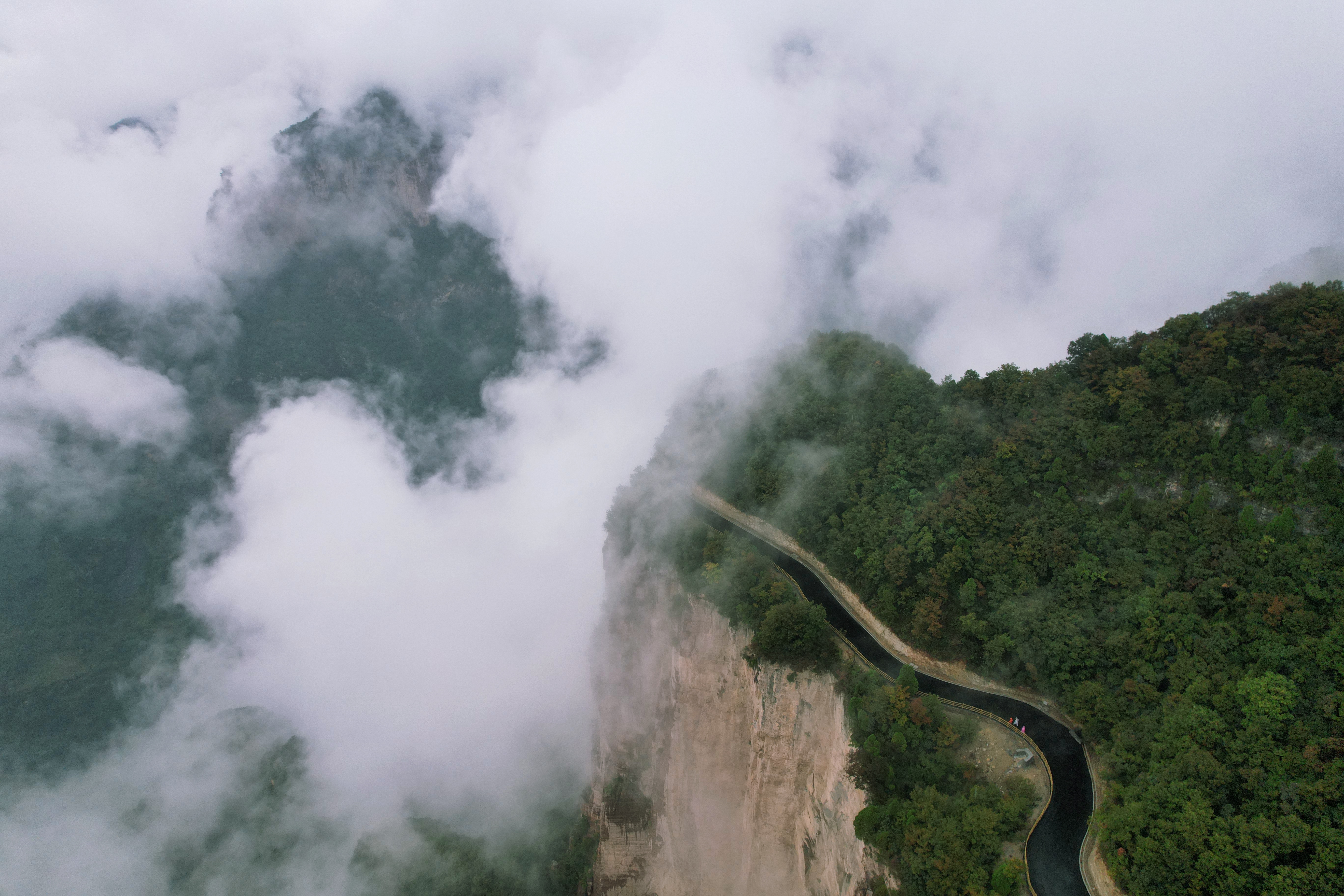 云海还在继续,路也还在继续。终于在下午四点左右的时候穿过了王莽岭景区北门到达这段线路的终点南马鞍,大元宝领队已经早早安排好车子在接我们了,上车,去郭亮挂壁公路。