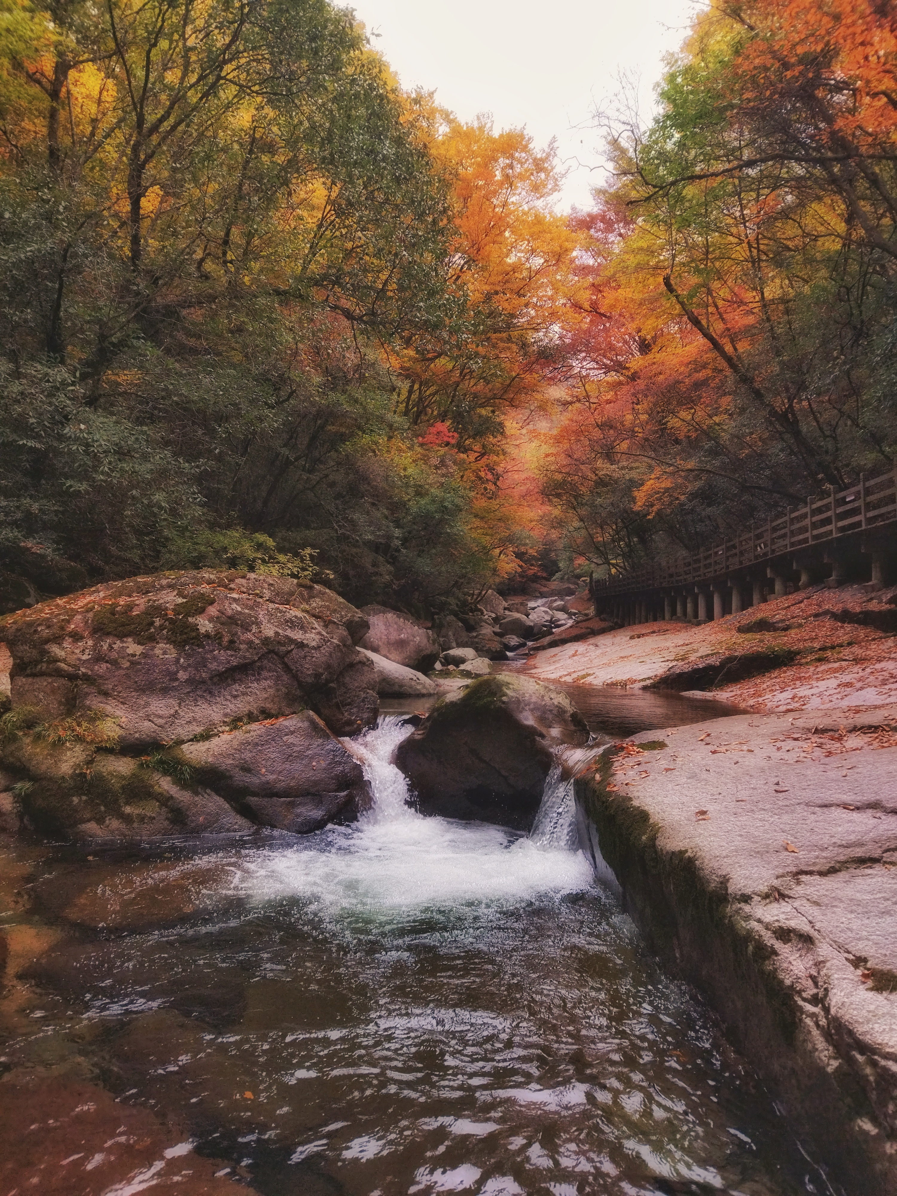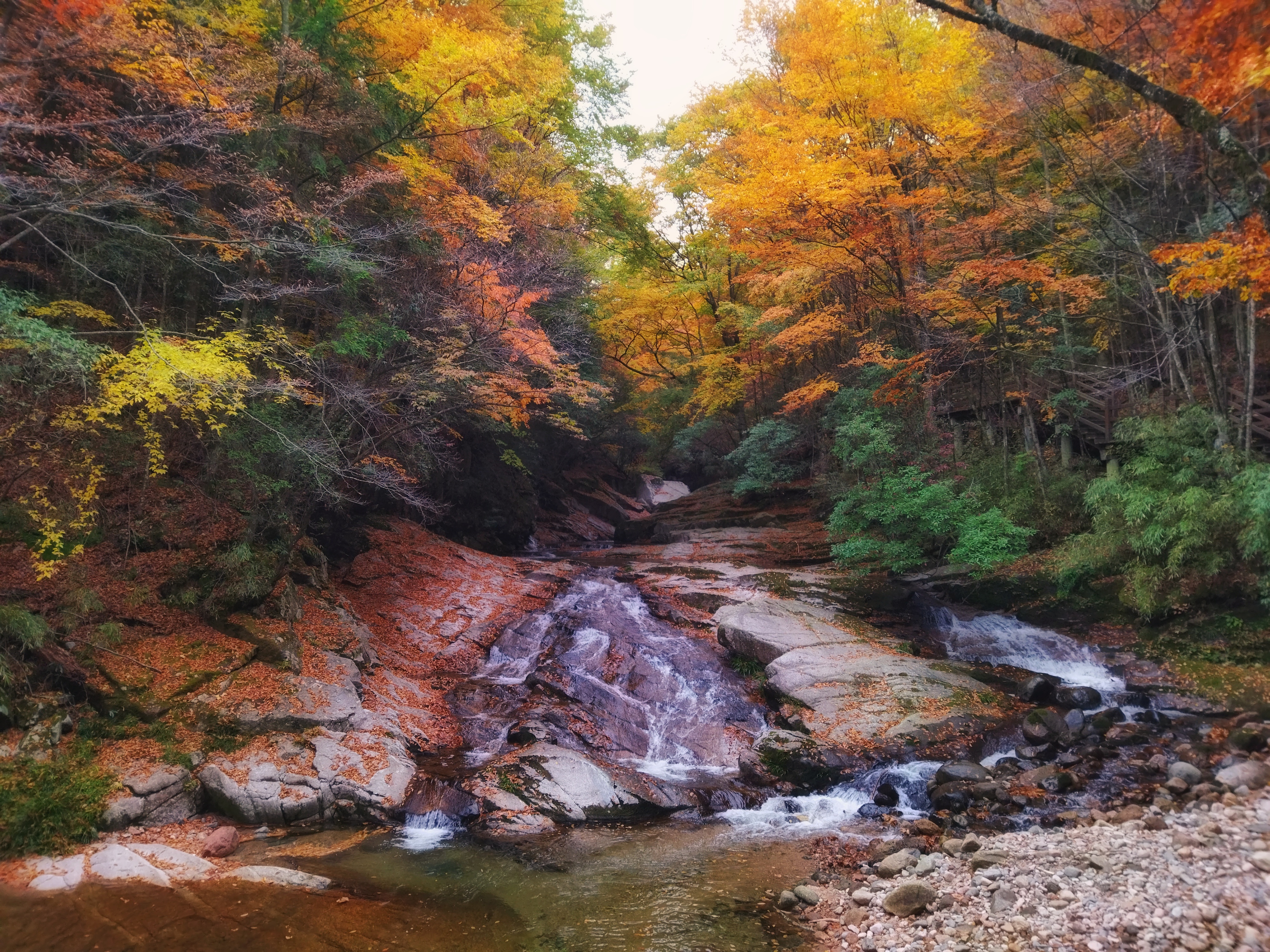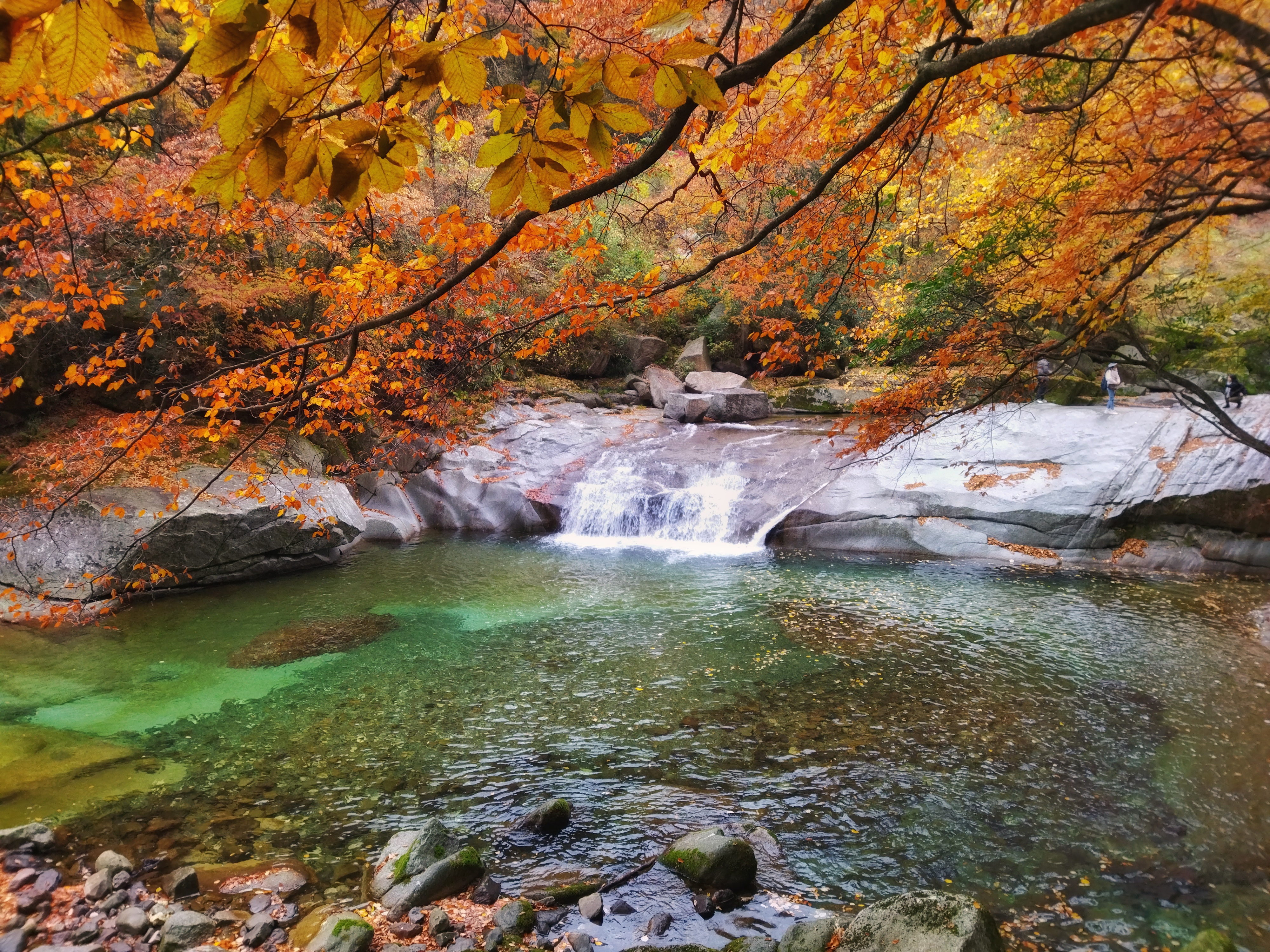 景区密布着18个瀑潭,主要有婚纱瀑布、五彩池、仙女潭、孔雀潭等精品景点。最漂亮上半段。
