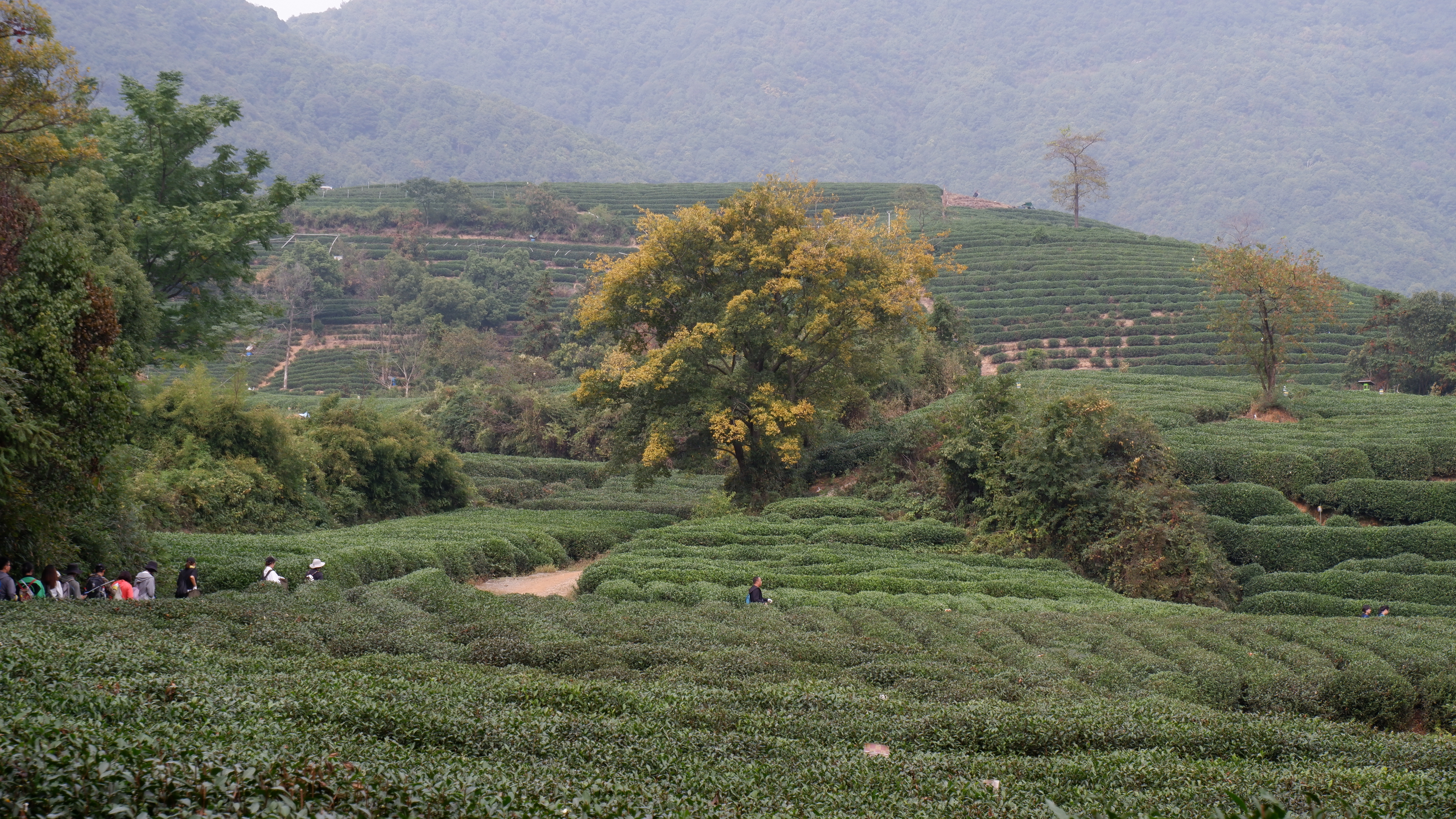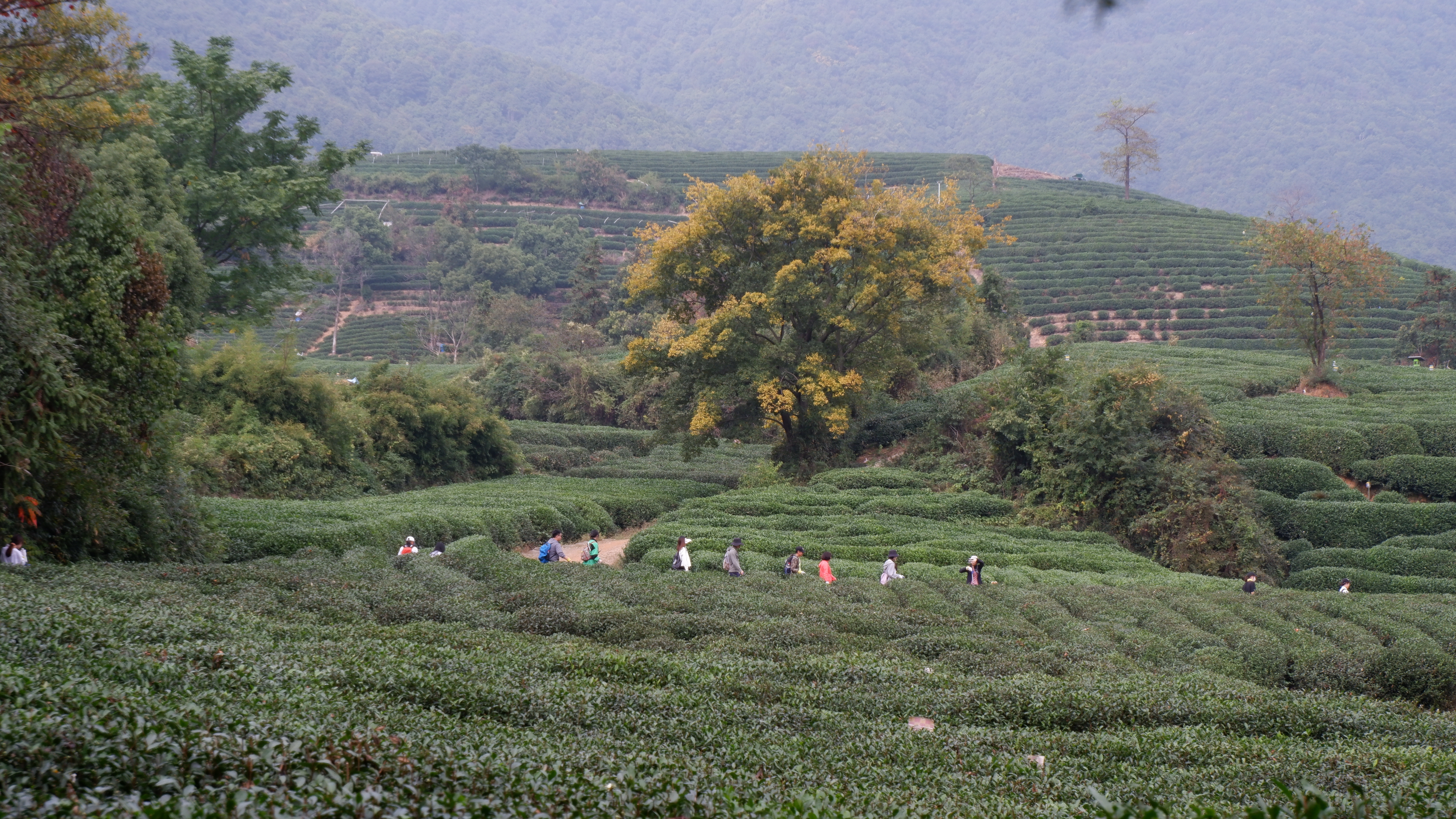 这里的路线很丰富,走法也非常多样,基本都是在山腰山脊线上,可以俯瞰山谷,眺望远方,风景非常好,这里可以遇到茶田,野林,峭壁还有一路铺满阳光和金黄树叶的山路,真的美不胜收,这条路线融汇了林间漫步,巨石攀爬,山脊瞭望,景区游览,水库小息,茶田观赏于一体,内容比较丰富,景色非常不错,缓急交替,乐趣横生